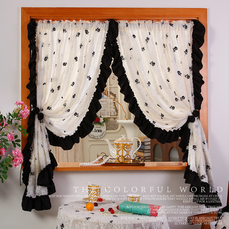 淘公主风窗帘c免打孔安装双层带纱伸缩杆全套女孩房间布纱一体遮光