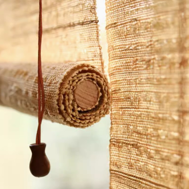 淘宝阳台窗帘免打孔阳光玻璃房遮光屏风遮阳帘茶室卷帘苎麻隔断帘布料