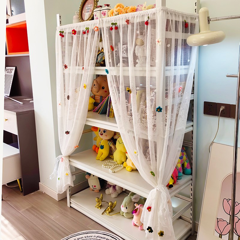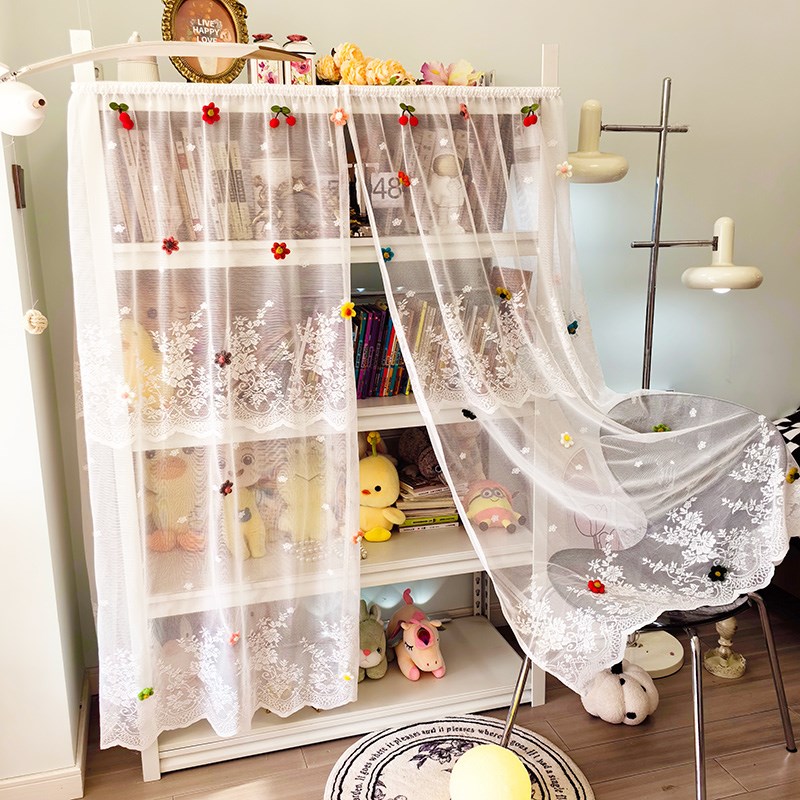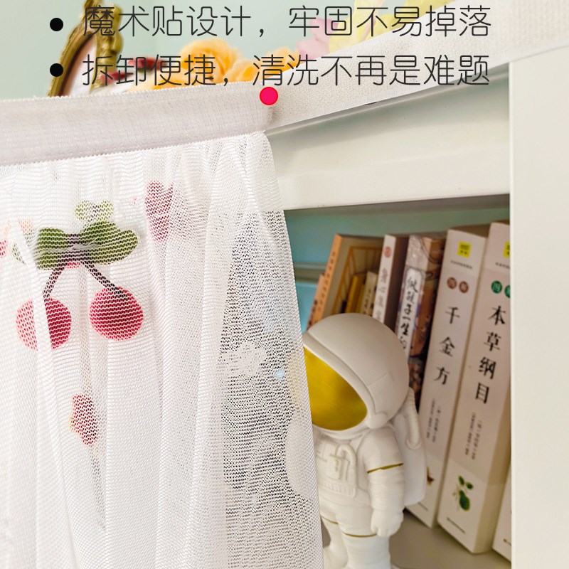 淘宝图书馆书架衣g帽间遮丑隔断帘大厅白纱窗帘点缀樱桃装饰花朵窗帘