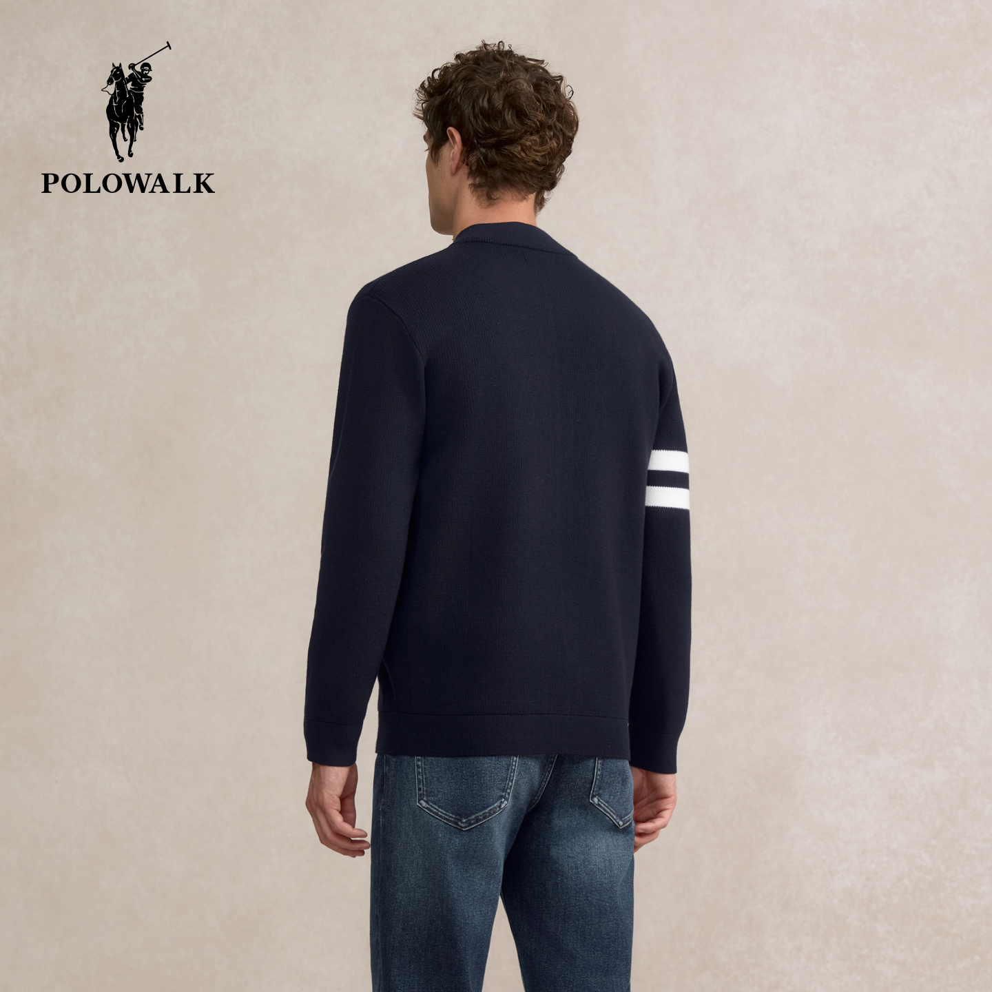 POLOWALK男式针织衫2025秋季新品时尚假两件条纹翻领上衣百搭套头
