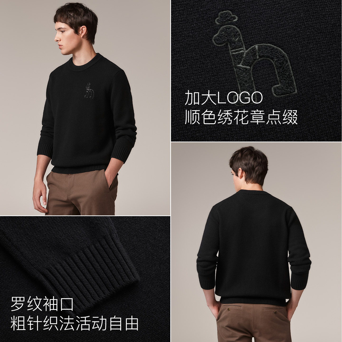 天皮皮狗秋冬新款圆领不规则色块男羊绒衫简约撞色针织套衫