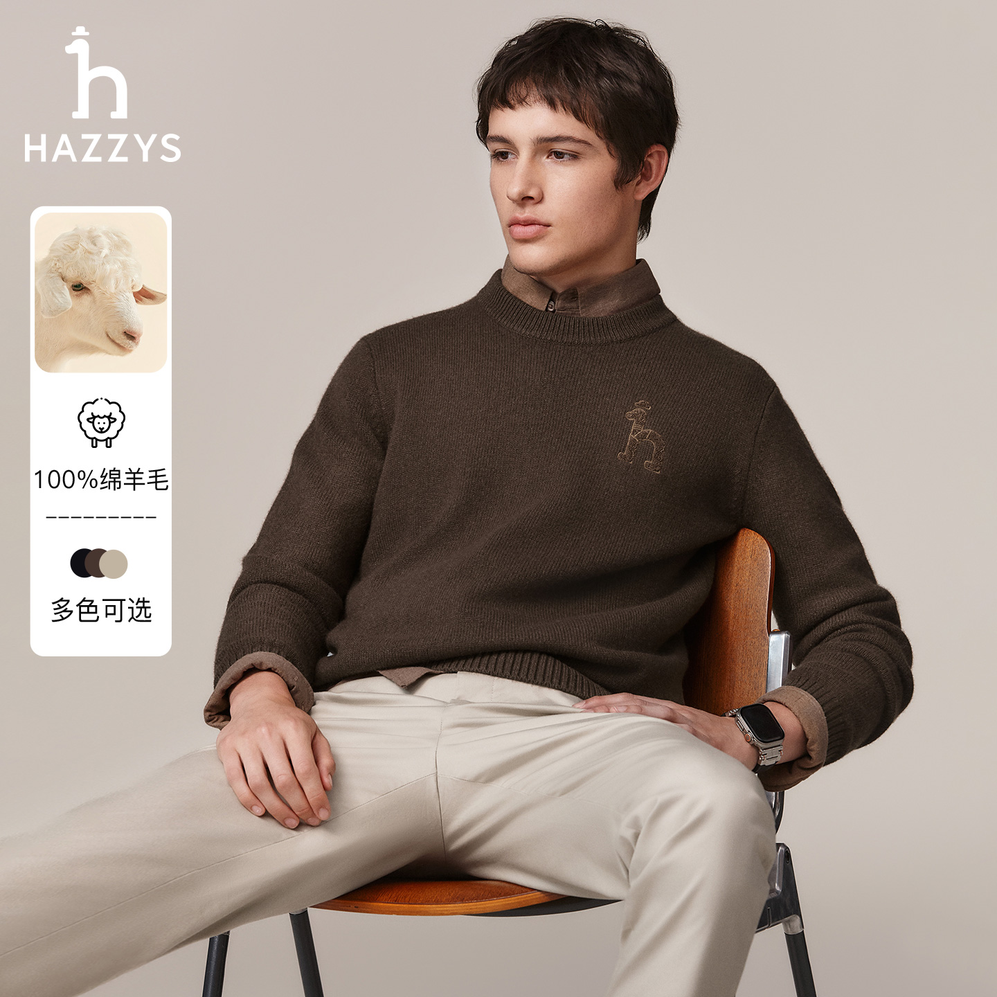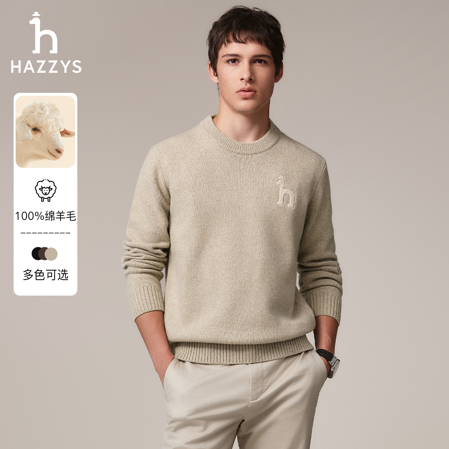 淘宝【100%绵羊毛】Hazzys哈吉斯男士保暖针织衫秋冬休闲男装多色毛衣