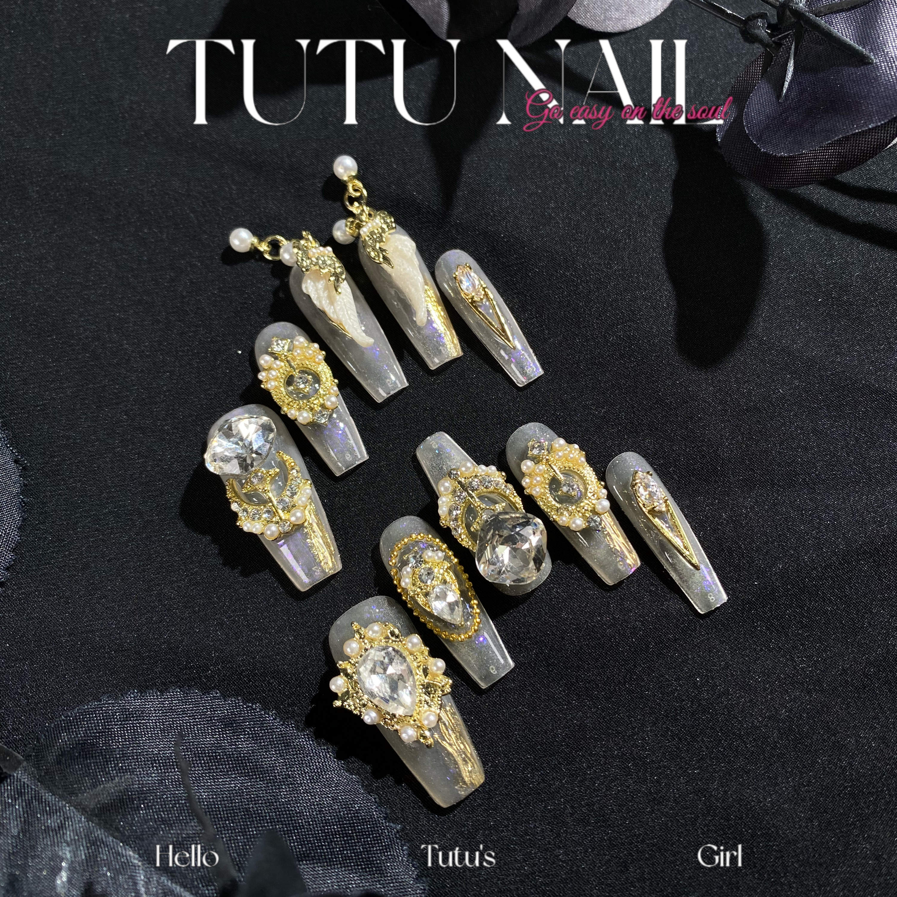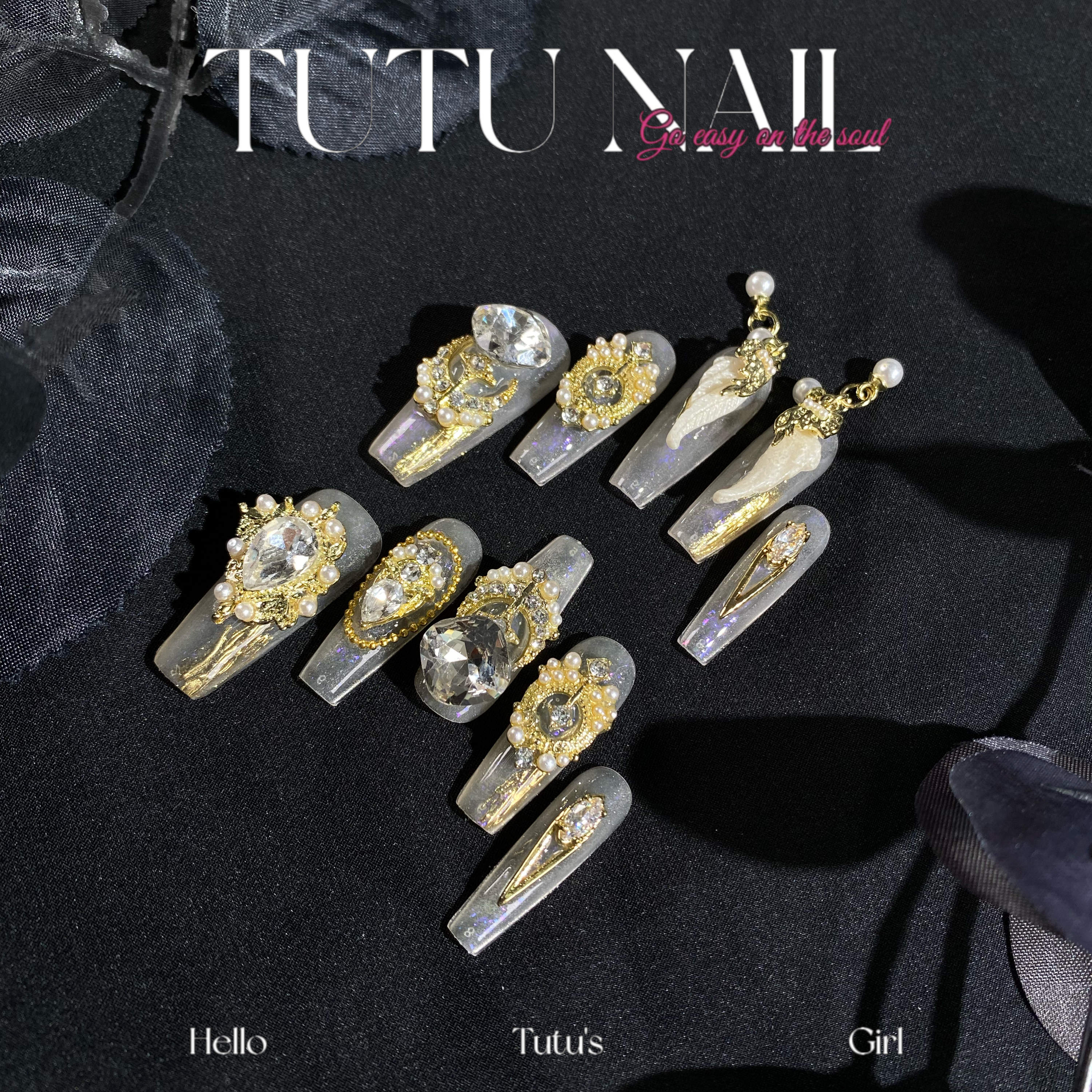 淘宝【射手座】TUTU NAIL手工穿戴可拆卸美甲重工奢华长T金翅膀婚甲