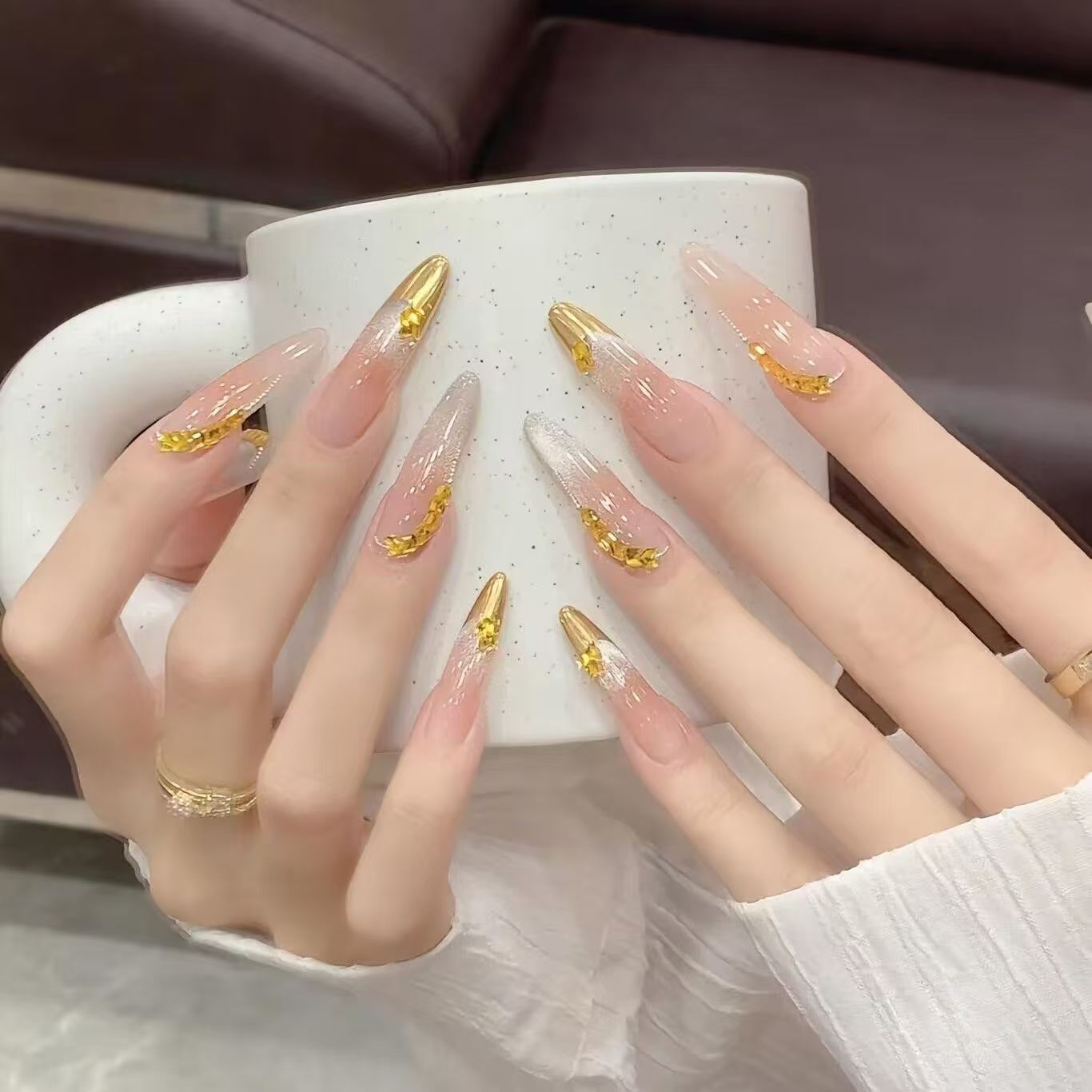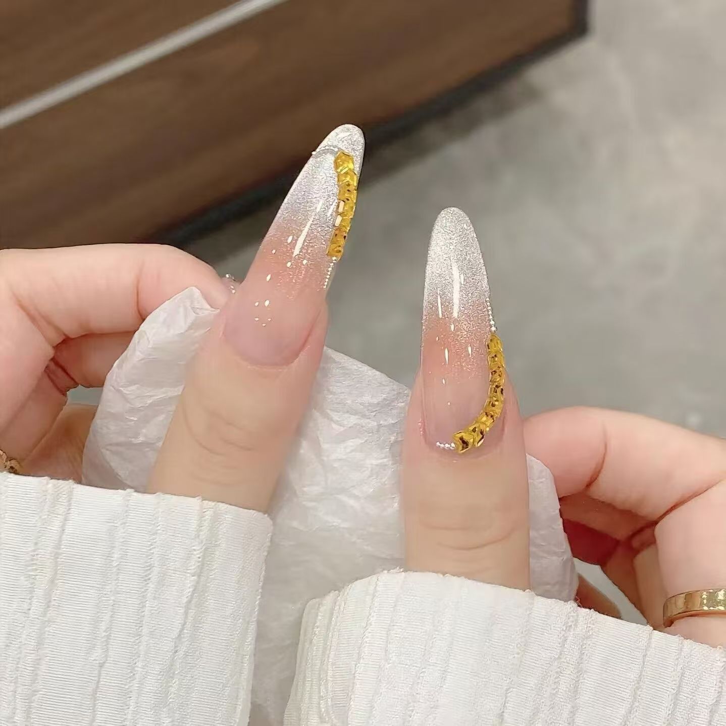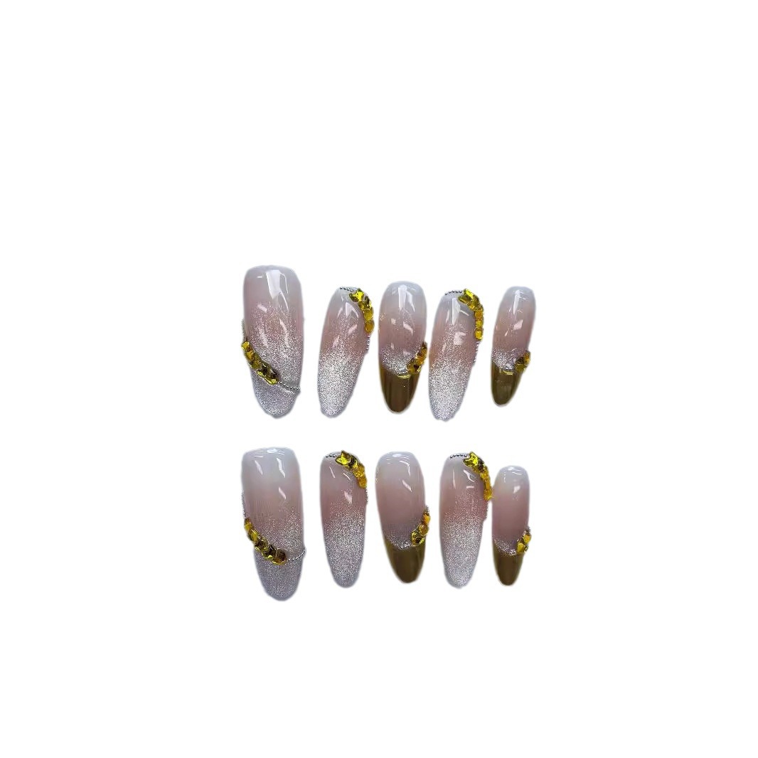 淘方钻美甲手工穿戴甲金属流苏高级感贴片成品甲片网红甲孕妇新娘