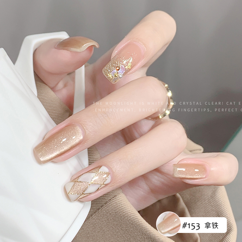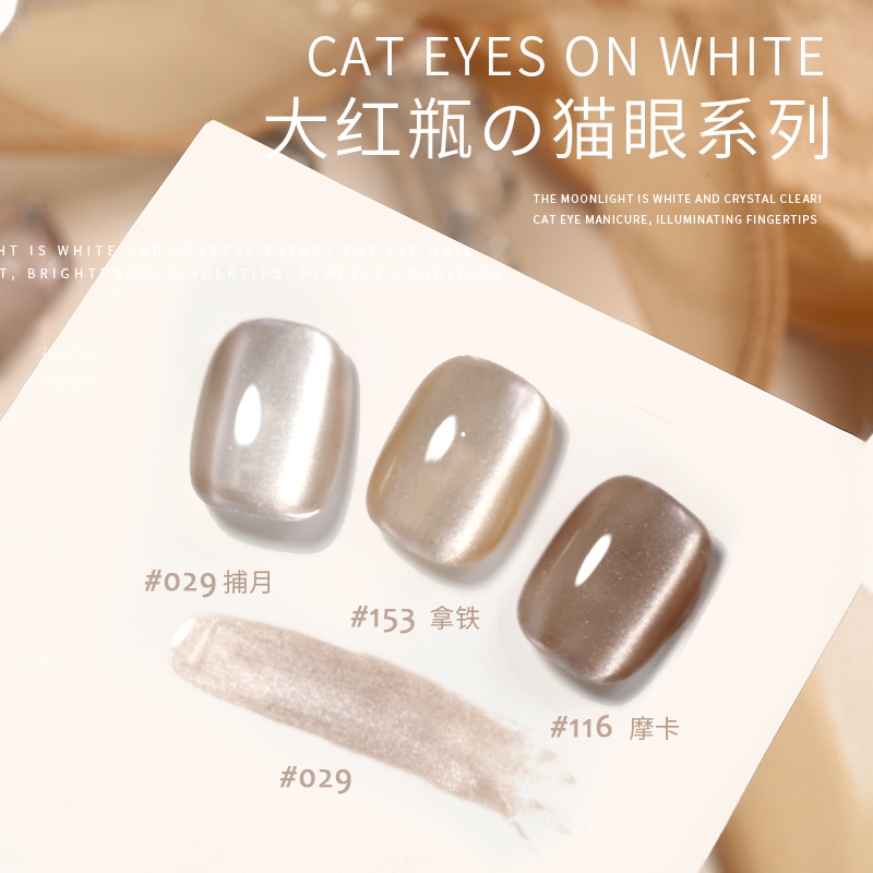 淘美甲白精灵猫眼甲油胶 新款超亮冰透玻璃珠晶石猫眼