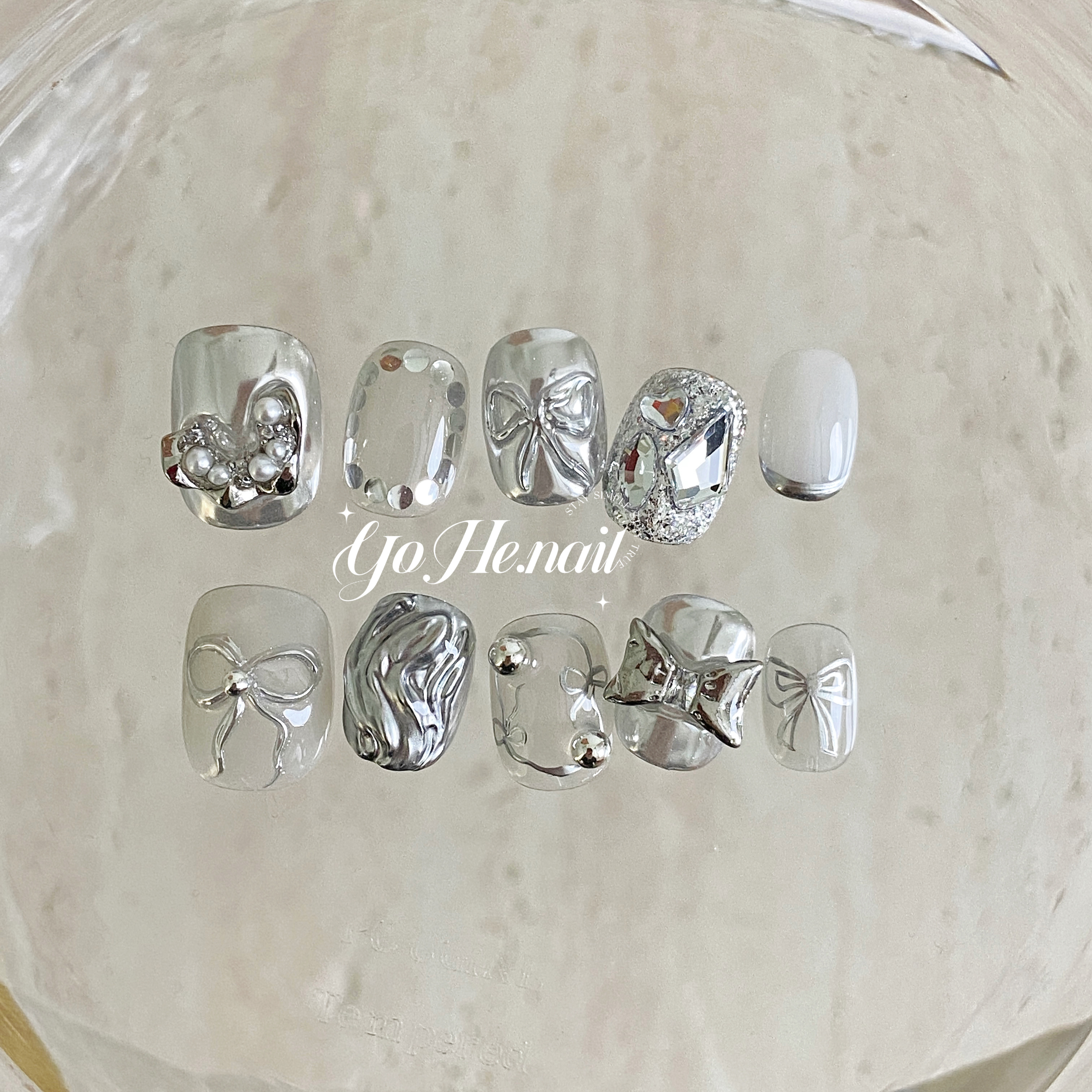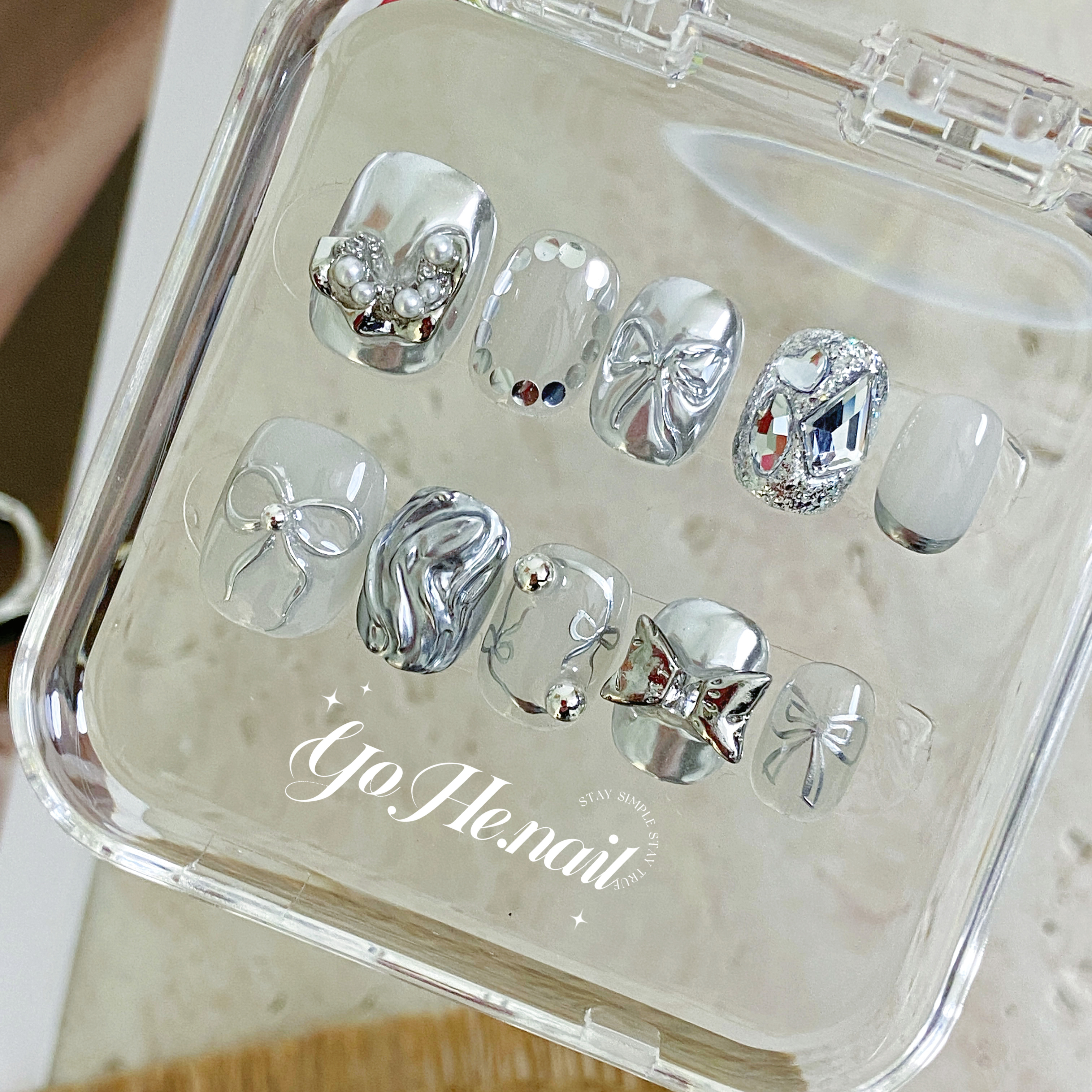 网纱蝴蝶结纯手工穿戴甲梦游仙境女生美甲可爱ins童趣手工美甲