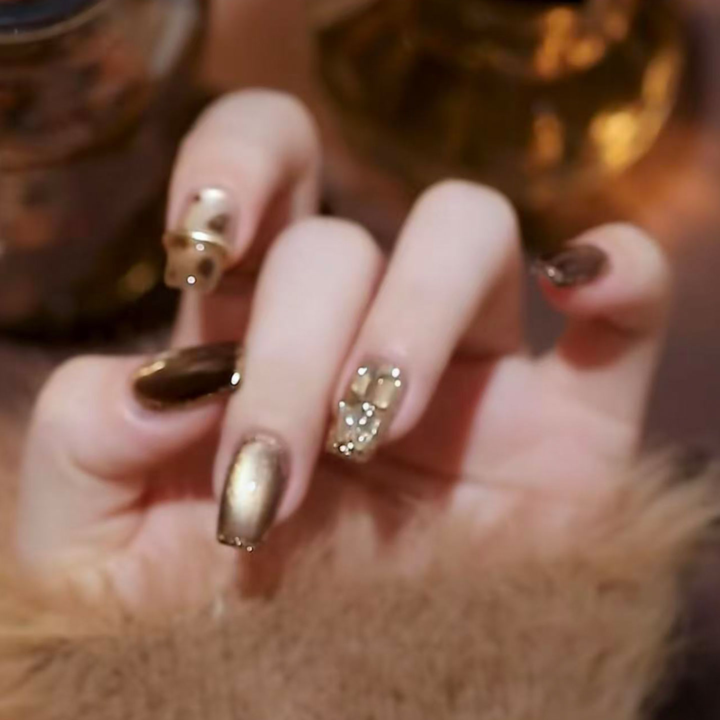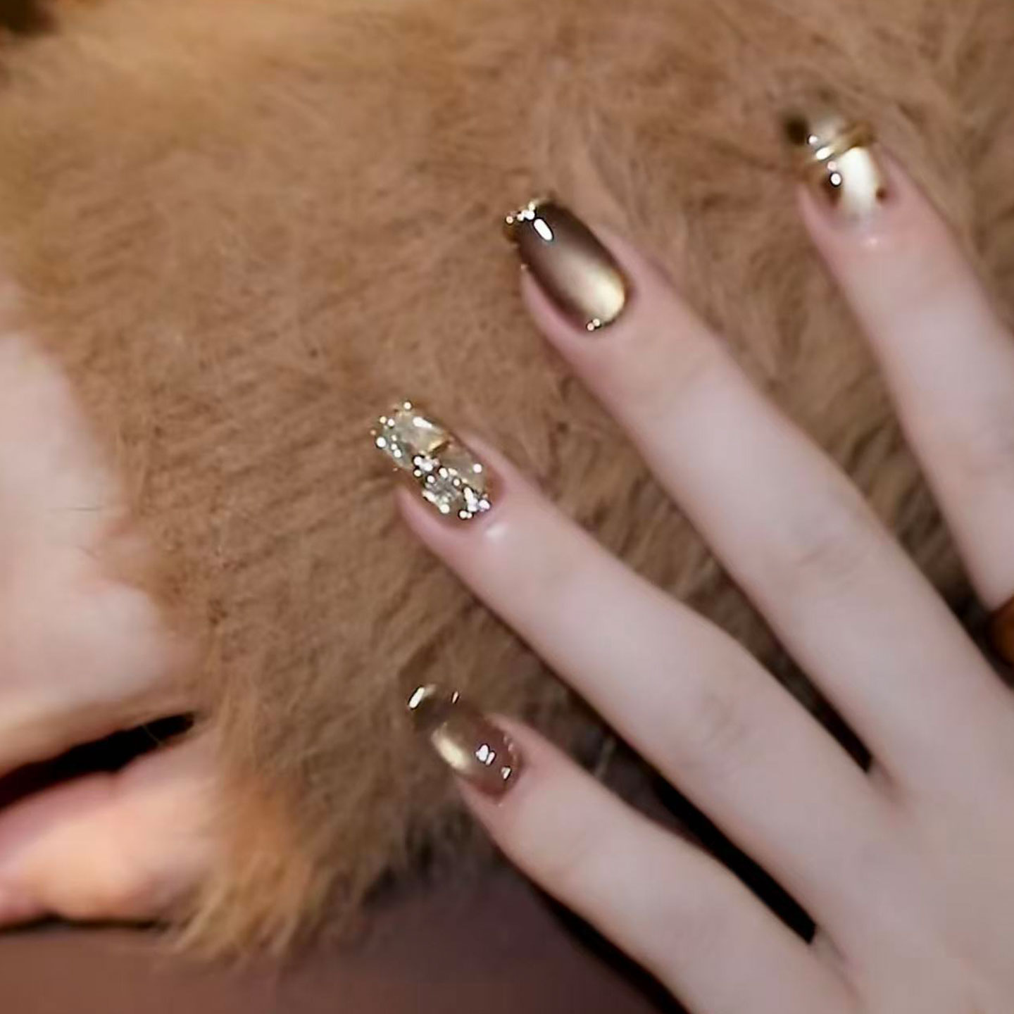 淘宝【焦糖慕斯】秋冬高级感美拉德轻奢鎏金猫眼爆闪美甲纯手工穿戴甲