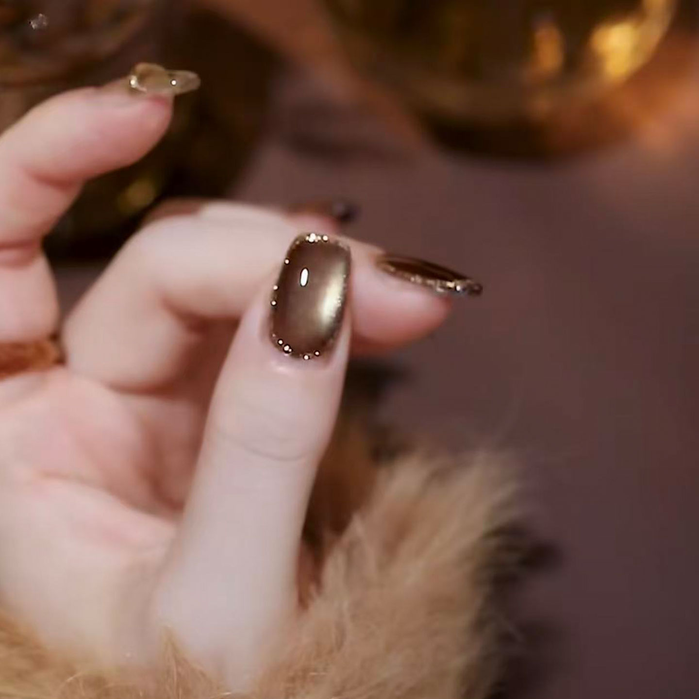淘Lilynail秋冬美拉德琥珀棕猫眼手工穿戴甲高级感美甲贴短款指甲贴