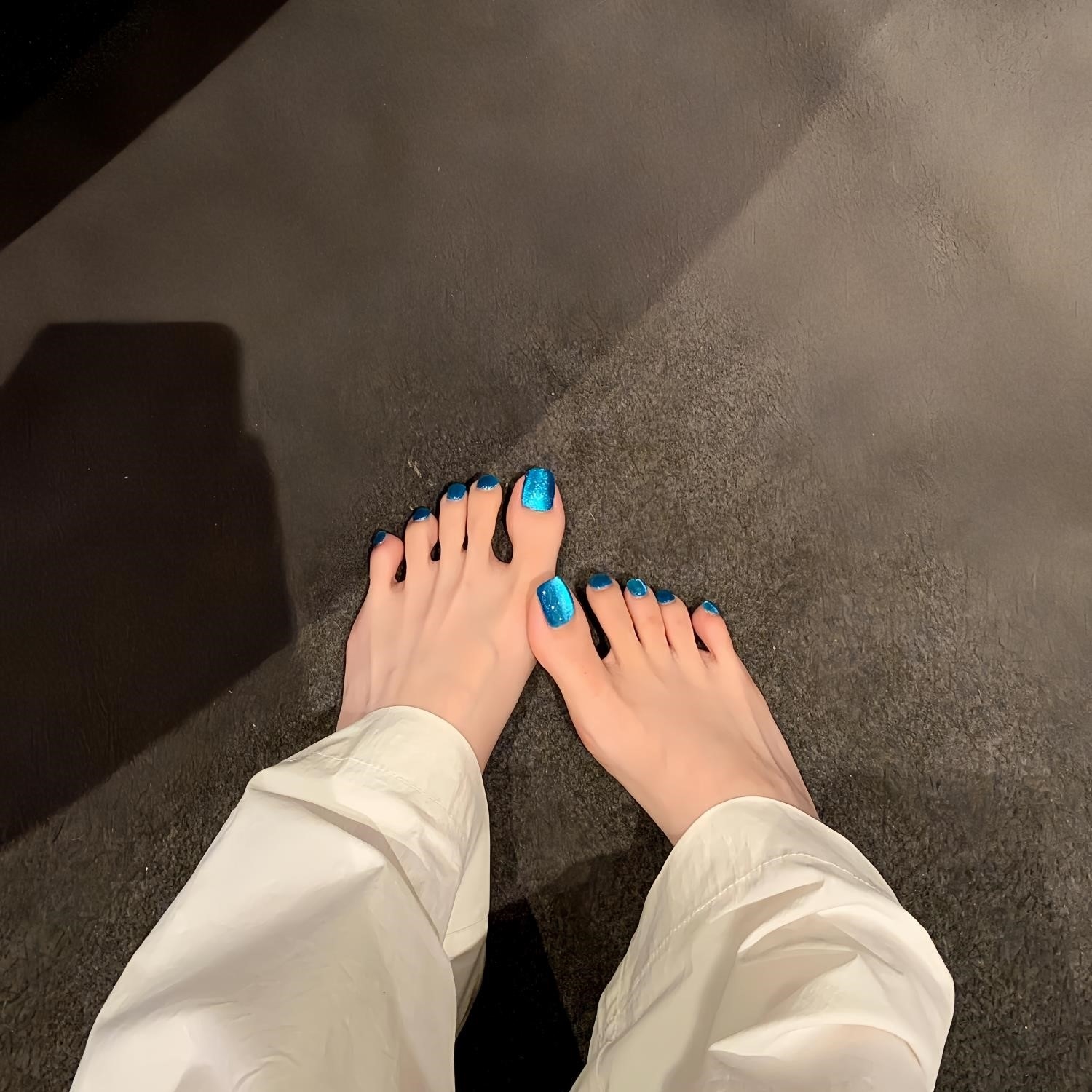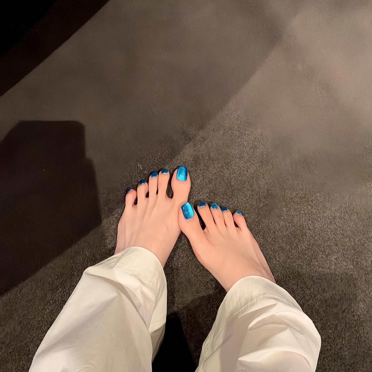 淘宝猫眼穿戴甲脚趾甲显白高级感成品爆闪蓝色裸色脚指甲贴片2025新款