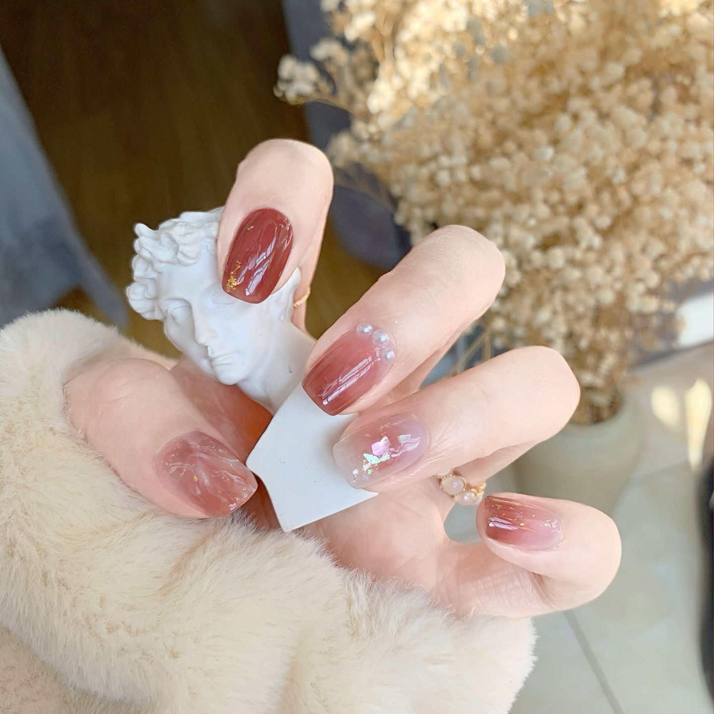 淘宥荷Studio 小甜酒显白脚趾甲穿戴甲美甲定制假指甲手工定制短甲