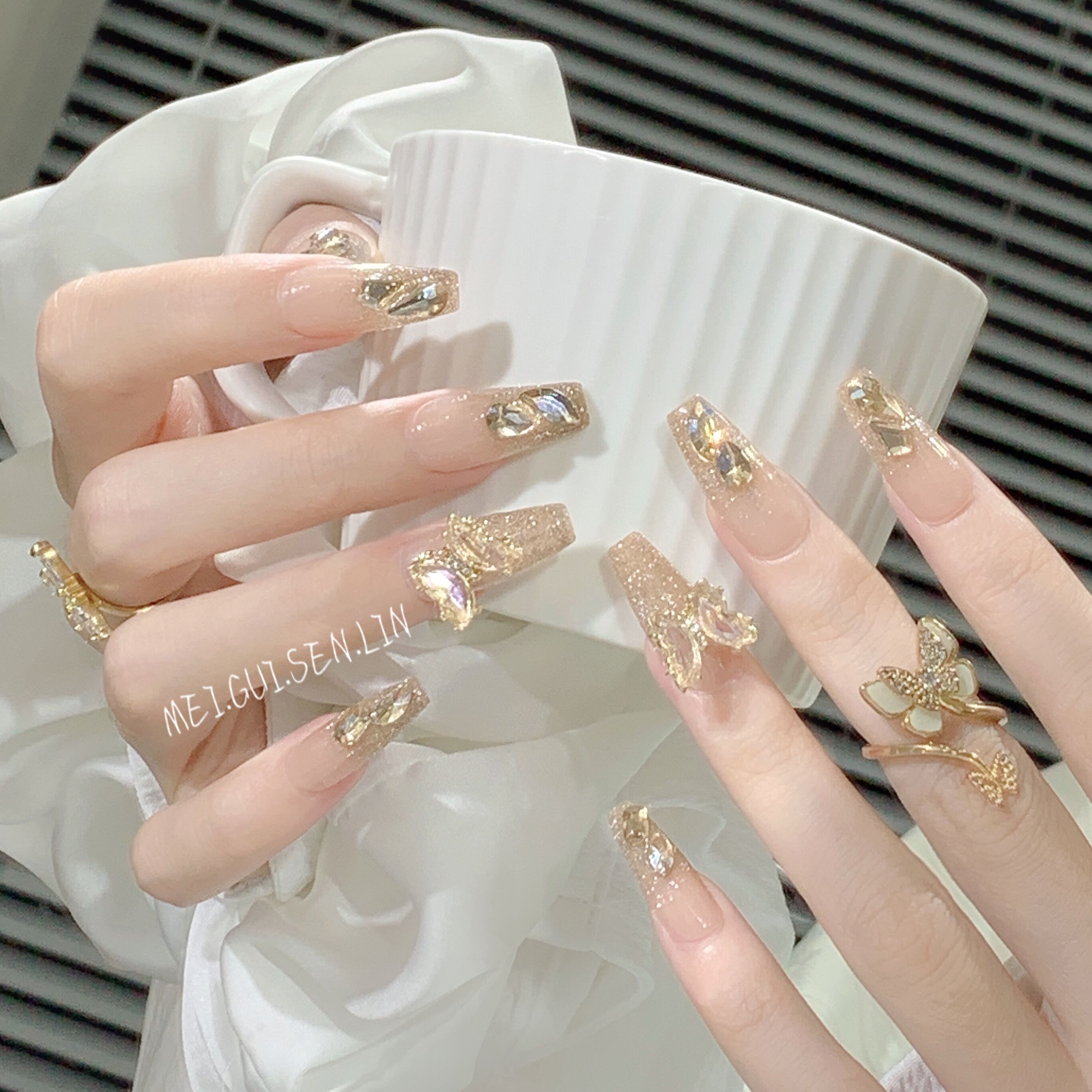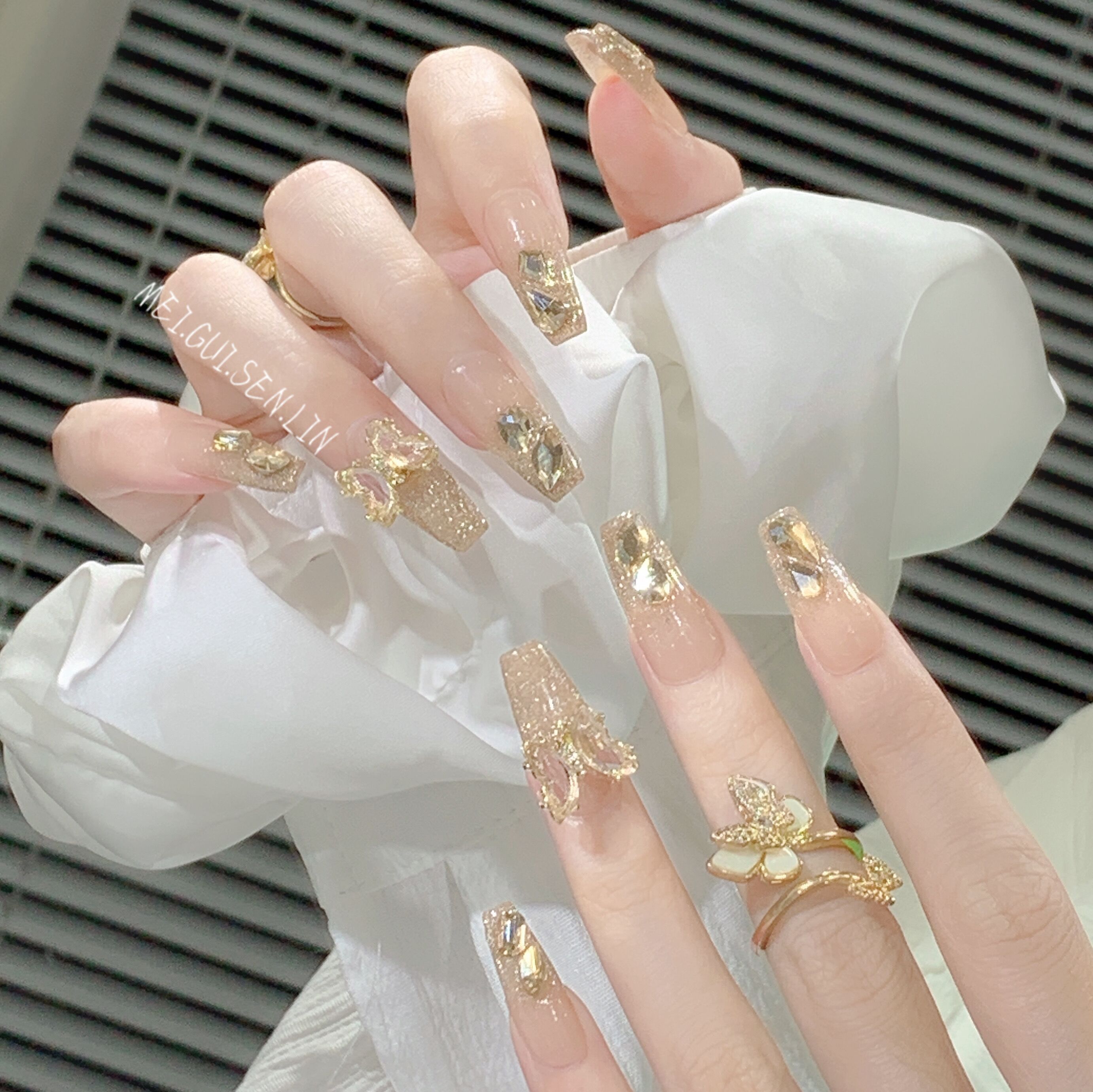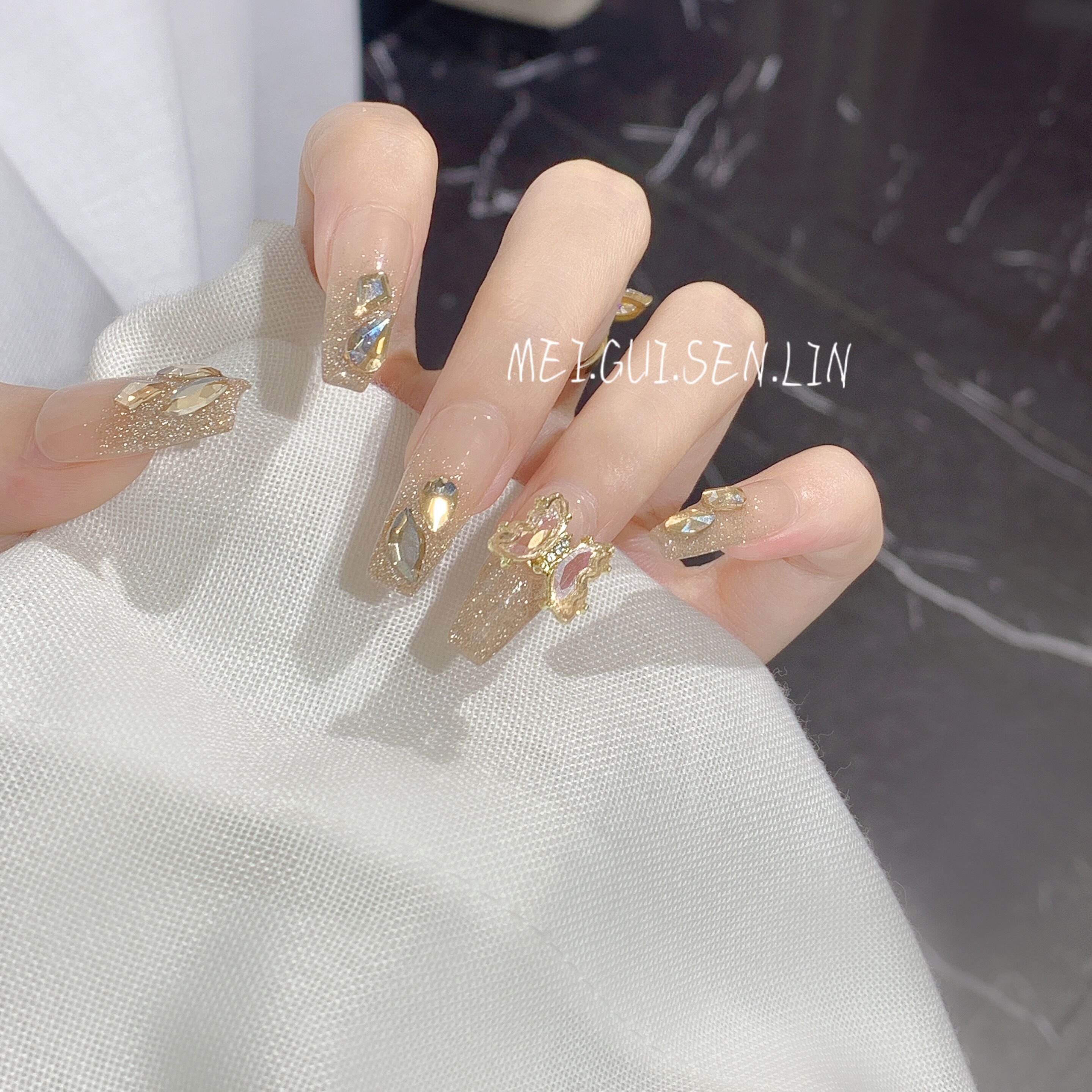 淘红金蝶影 2025新款美甲成品纯手工日系新娘婚甲穿戴甲奢华高级