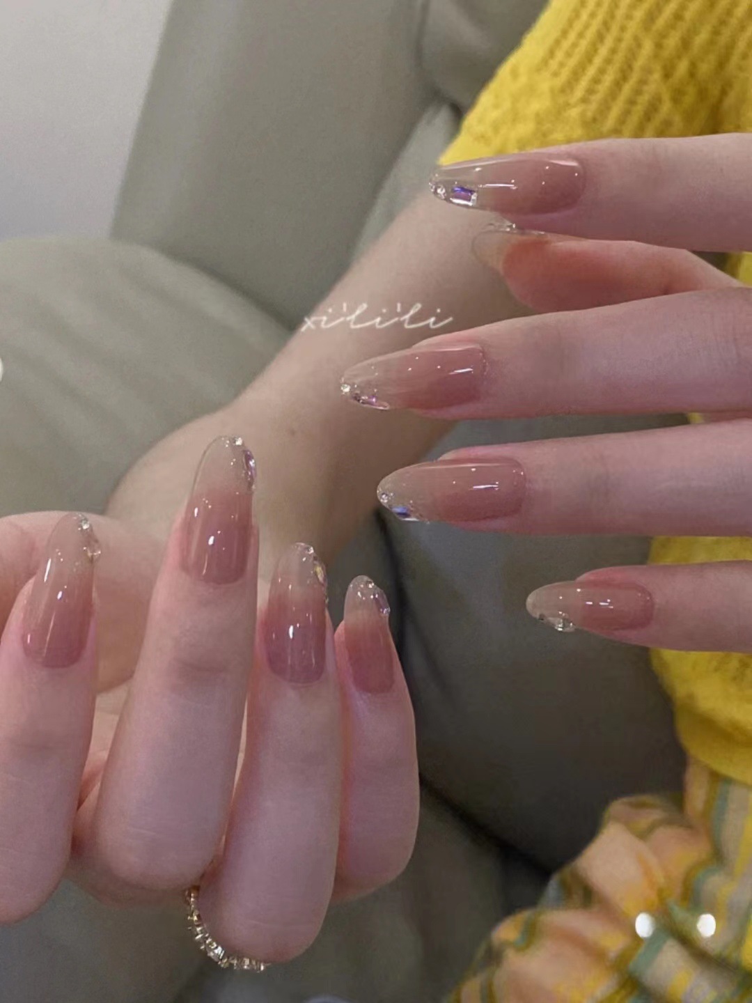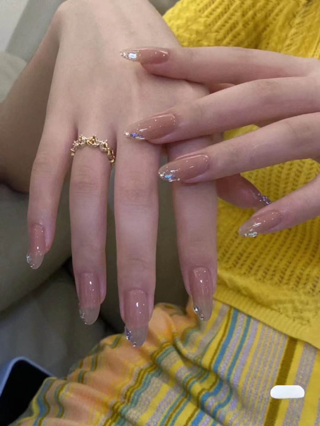 淘宝指尖钻爆款冰透裸色显白美甲纯欲风纯手工可拆卸新品美甲杏仁甲