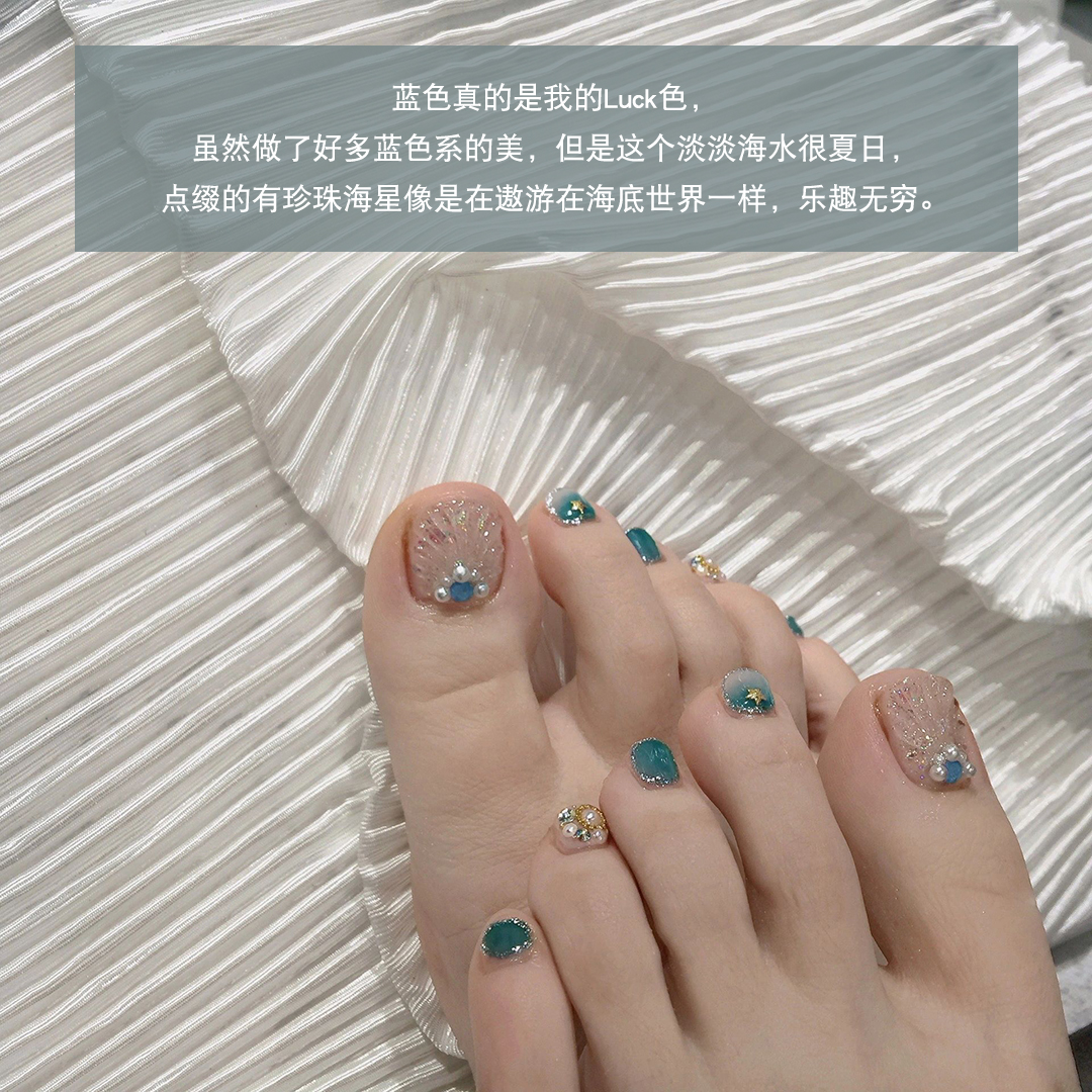淘宝夏日海底世界显白贝壳美甲沙滩度假脚趾甲光疗成品防水持久可拆卸