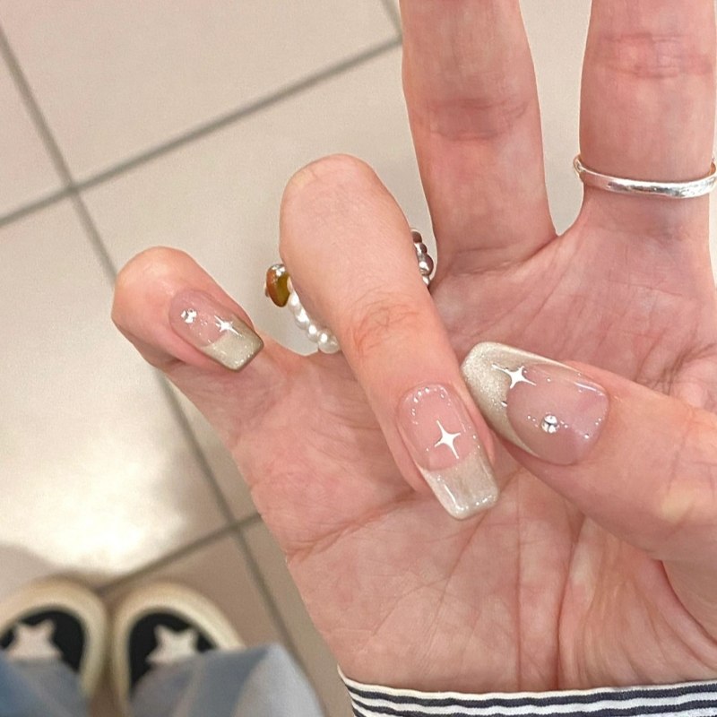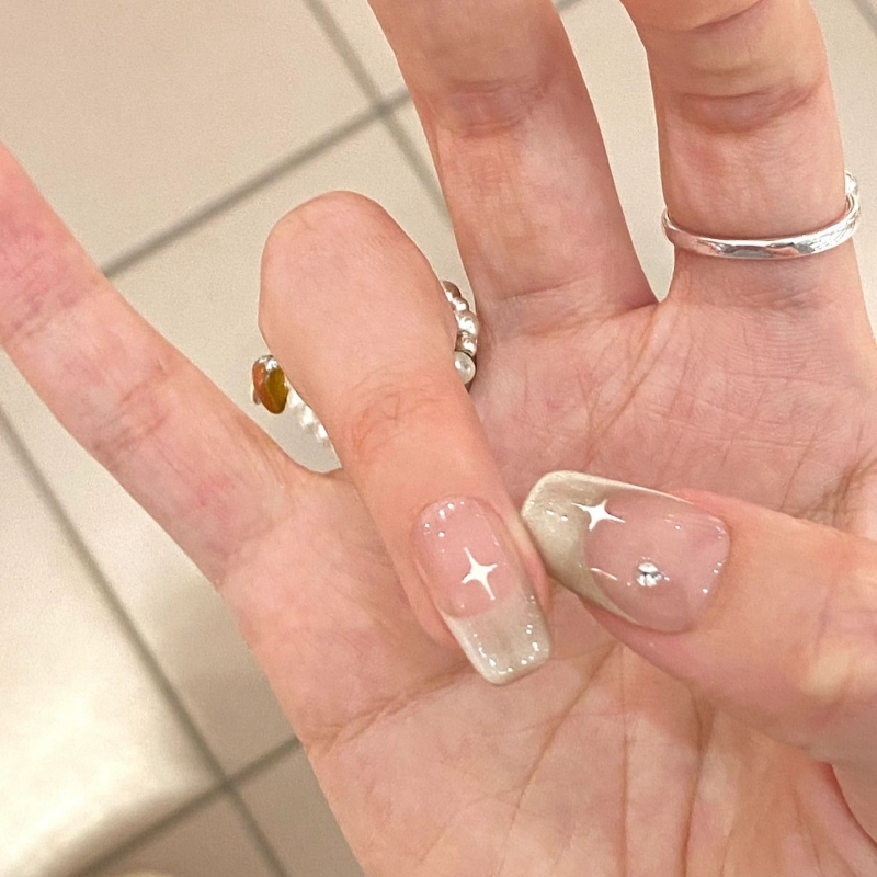 淘宝北极星|一秒甜心辣妹系列冰透晕染纯欲手工穿戴甲温柔气质美甲