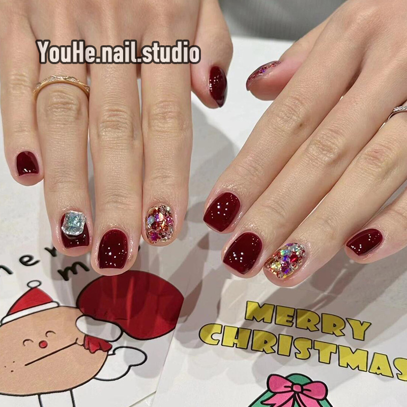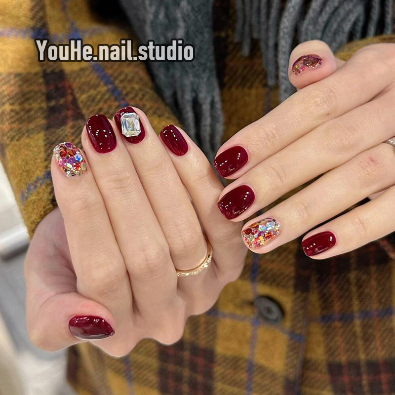淘宝红色穿戴甲短款高级感精致显白穿戴美甲2025新款手工绝美指甲贴片