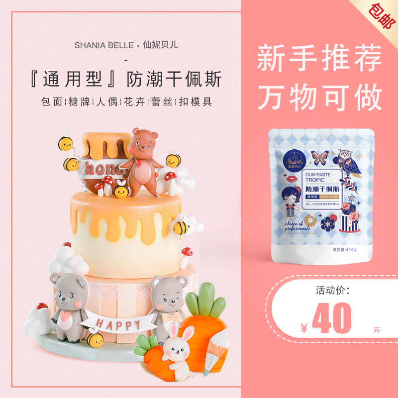 淘宝包邮仙妮贝儿防潮蝴蝶结干佩斯可食用防潮翻糖膏糖牌人偶花卉通用