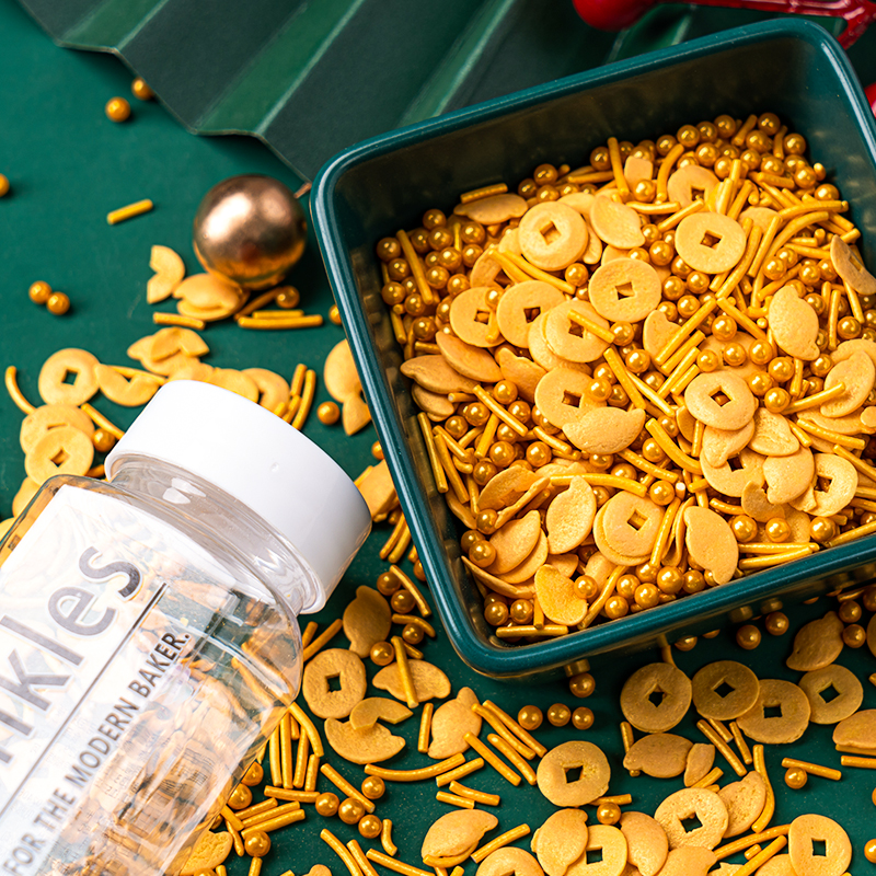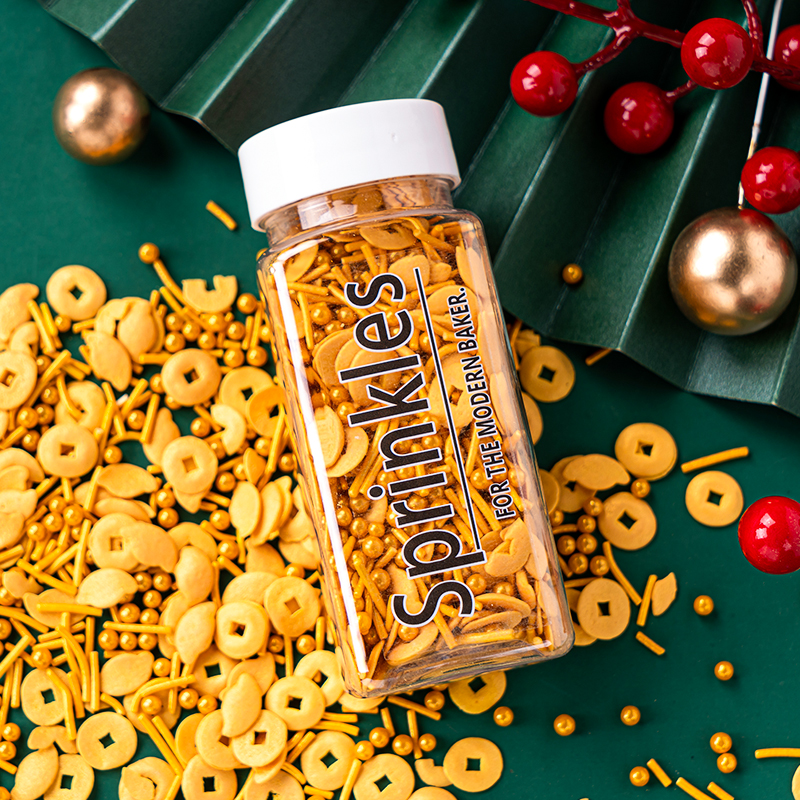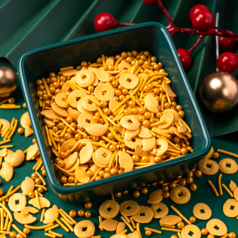 淘宝新年财源滚滚金色装饰糖2026春节跨年蛋糕装饰点缀铜钱糖珠糖针