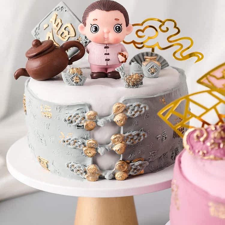 这款新年祝寿烘焙蛋糕装饰,是一款中式贺寿生日插件,专为庆祝长辈的生日而设计。它包含了爷爷奶奶爸爸妈妈的摆件,寓意着家庭的温馨和团聚。这款装饰以其精美的设计和独特的中式风情,成为庆祝生日时的理想选择。