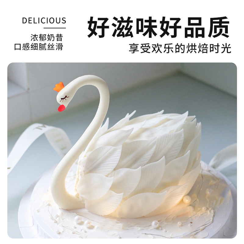 淘宝翻糖天鹅巧克力烘焙蛋糕装饰摆件白羽毛脖子情侣礼物婚庆生日插件