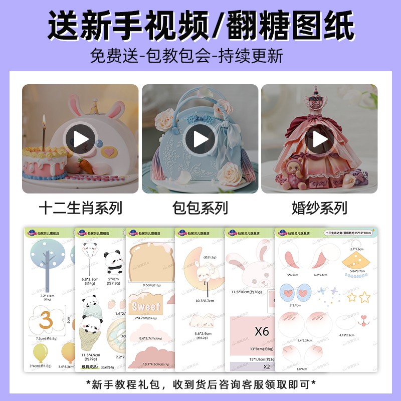 淘仙妮贝儿翻糖膏通用型干佩斯蝴蝶结防潮糖牌无蔗糖人偶花卉蛋糕