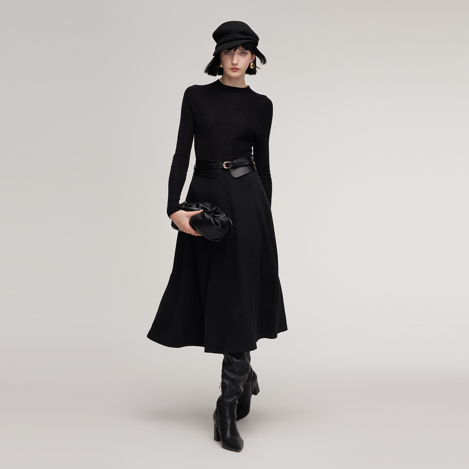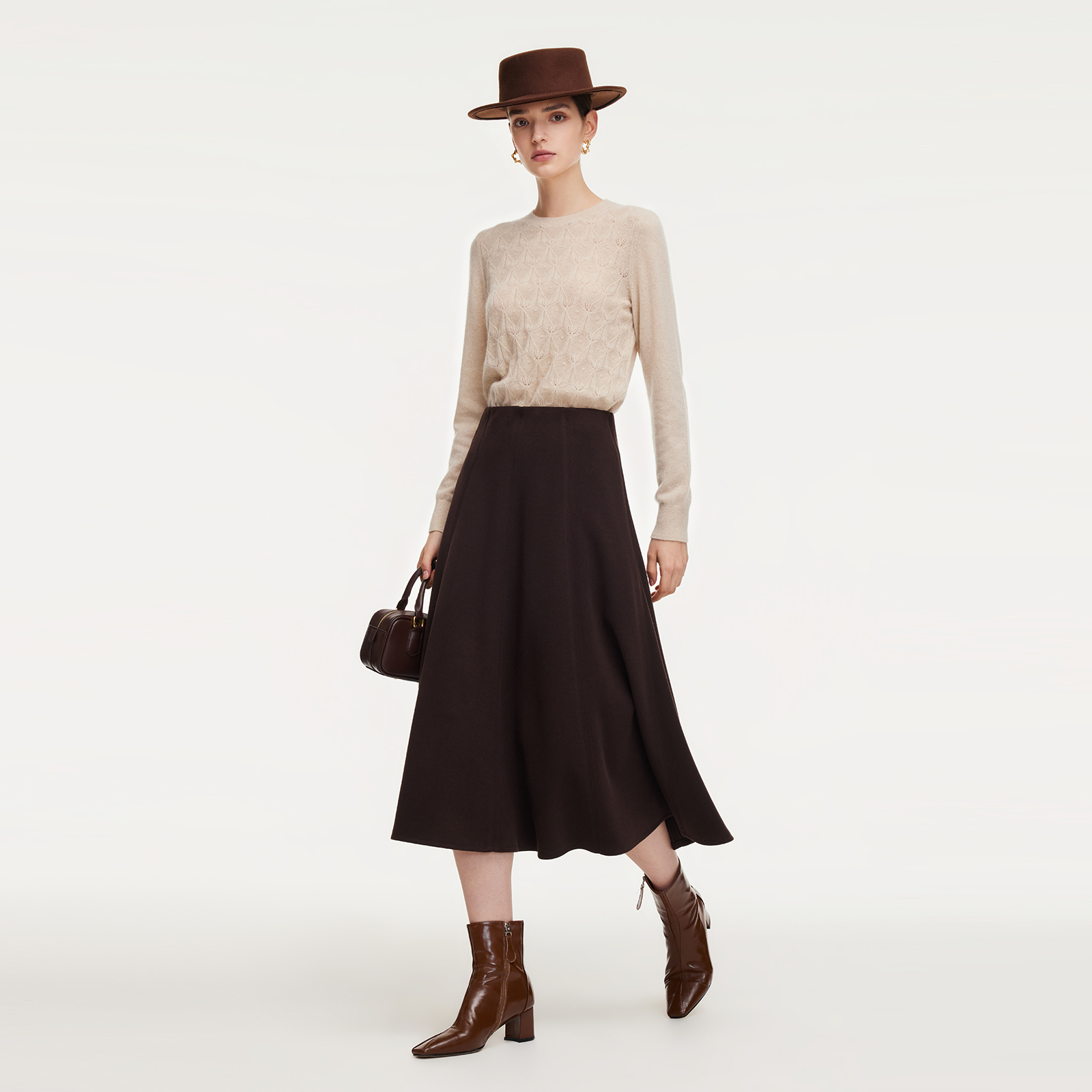 歌莉娅水洗羊毛半身裙女秋冬2025新款设计感八片裙伞裙1EDL2D11B