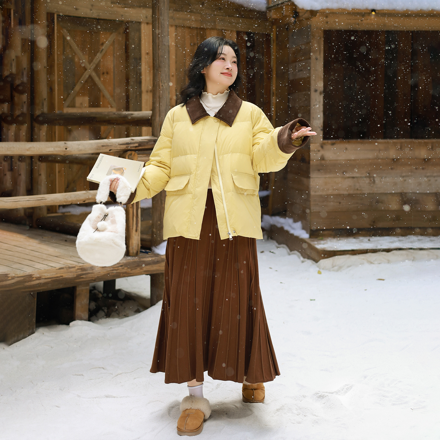 胖mm冬季保暖夹棉半身裙两件套木子理想大码女装轻薄防风棉半裙