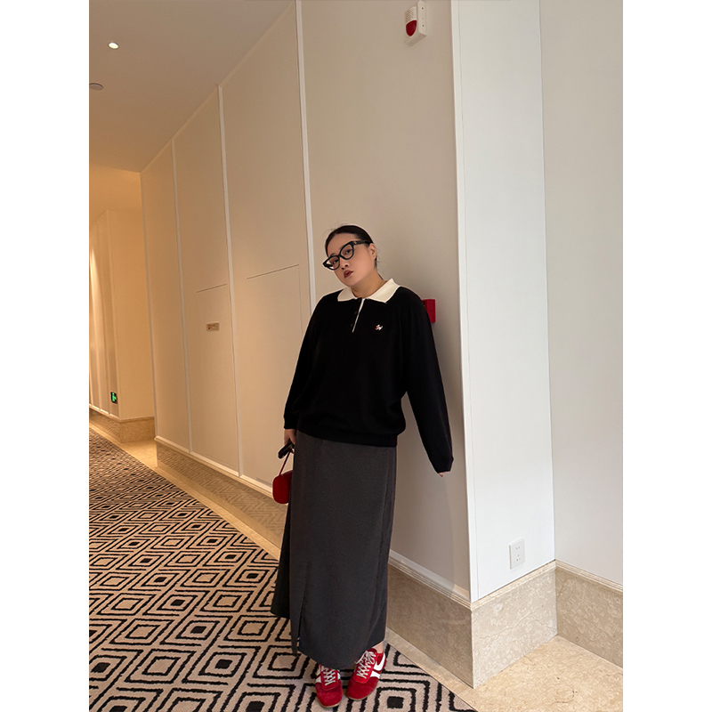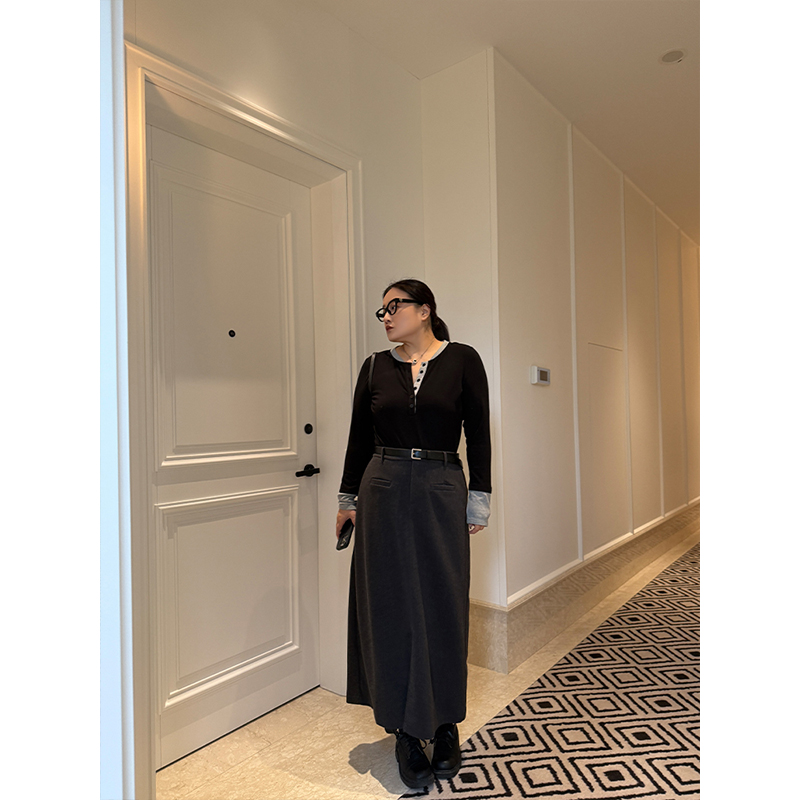 淘大码设计感小众黑色半身裙女胖妹妹高腰mm显瘦高级感秋冬新款长裙
