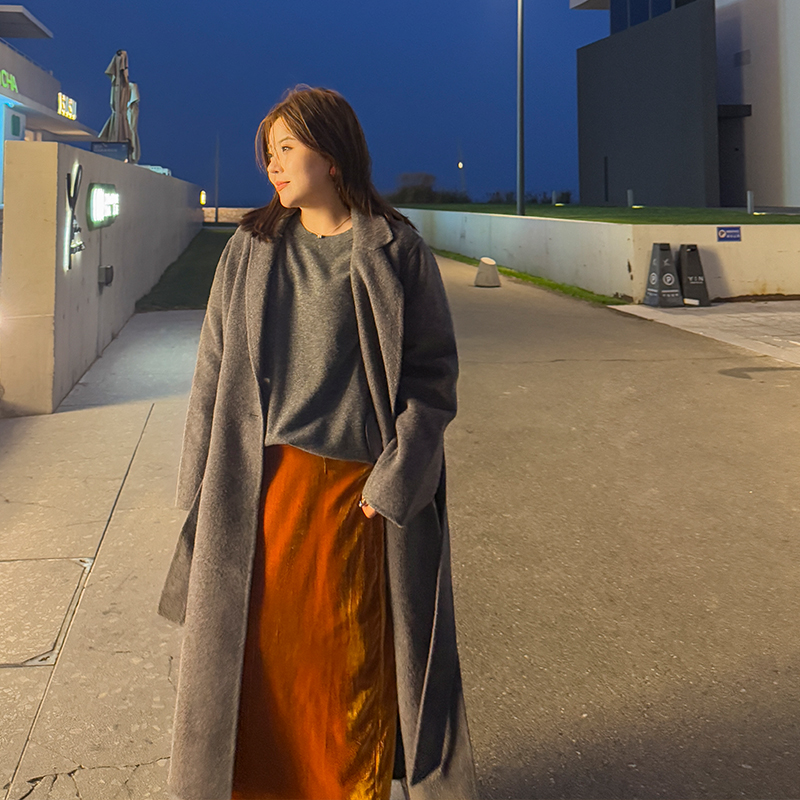 LESS冬时尚围裹式腰裙女直筒修身腰带设计中长款半身裙2O0D10200