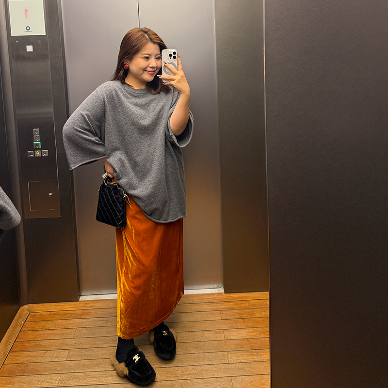 天珂莱蒂尔商场同款秋季款气质丝绒百搭显瘦半身裙女中长款半裙