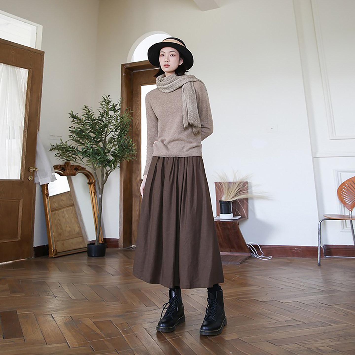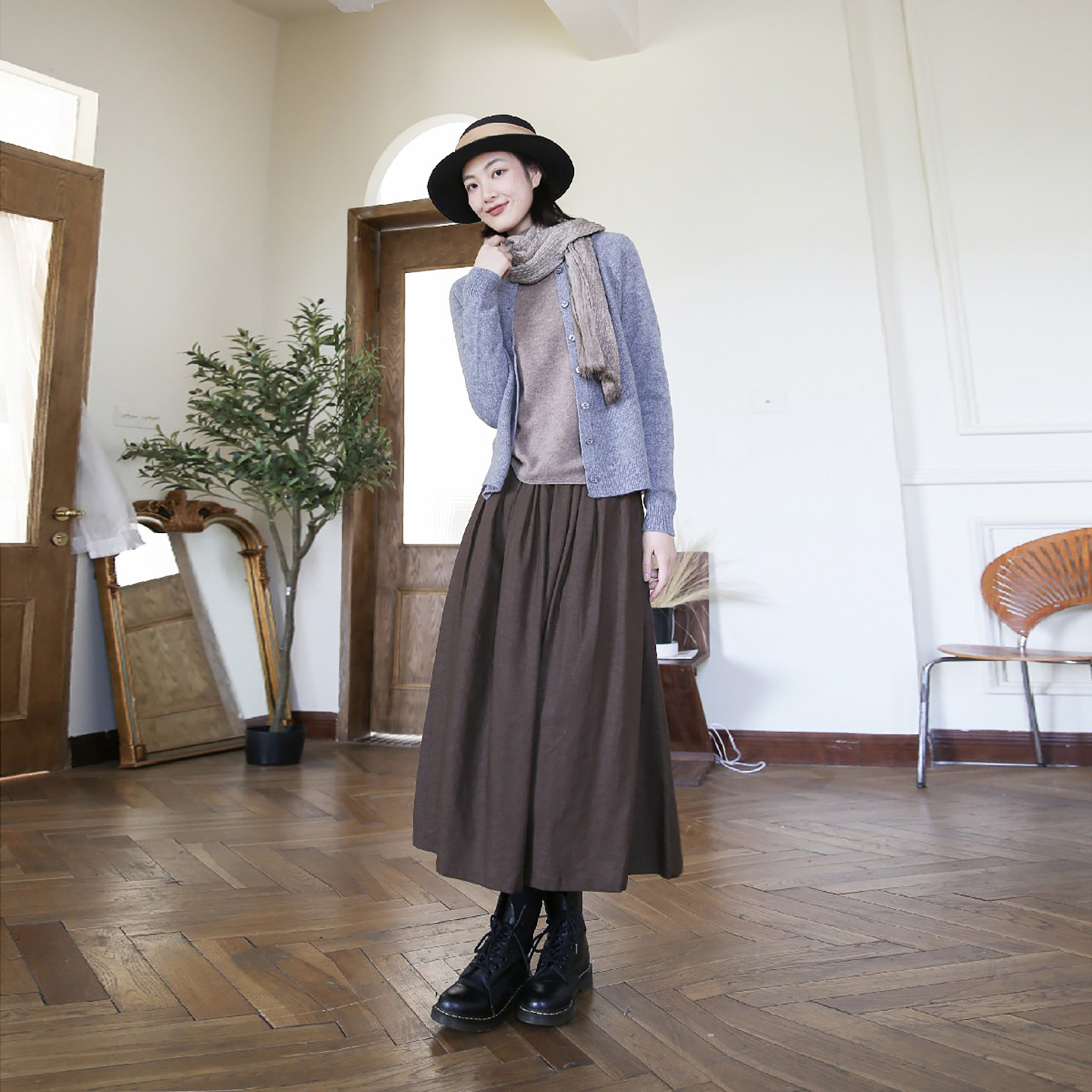 淘宝ZAN原创新款裙子棉麻半身裙秋冬文艺复古中长款显瘦半裙百搭长裙