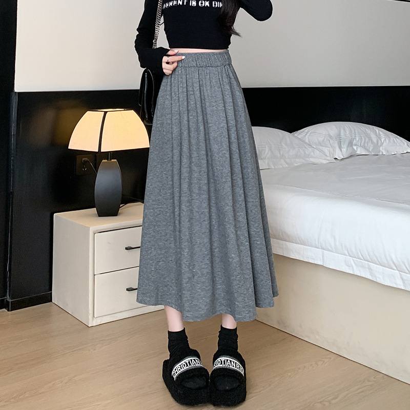 美拉德穿搭高腰棕色a字半身裙女大码胖mm遮肚藏肉百褶显瘦长裙冬
