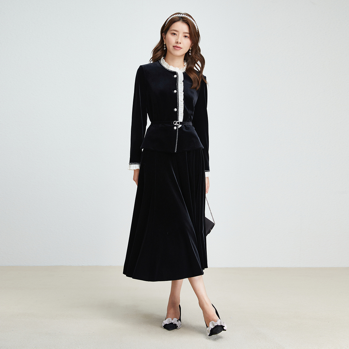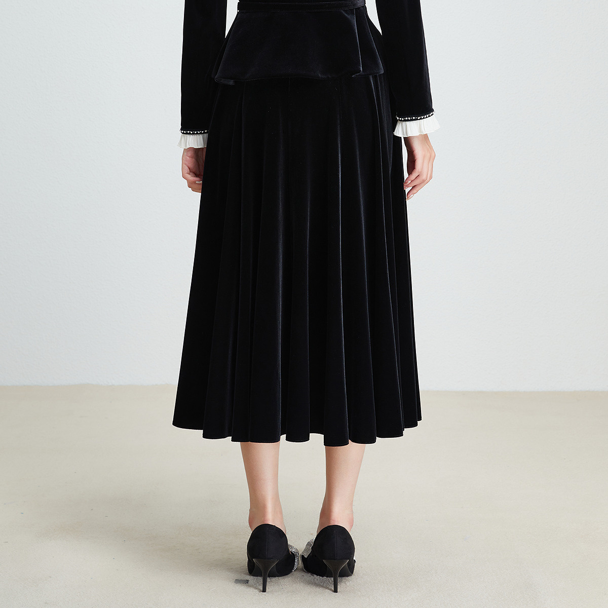天歌莉娅黑色丝绒半身裙女2025新款冬季穿搭针织厚款裙子1ENL2D150