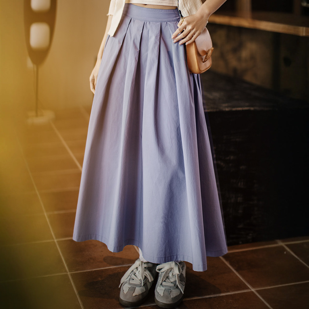淘宝马登蓝紫绿色多巴胺中长款日杂半身裙女士遮肚子显瘦百褶A字伞裙