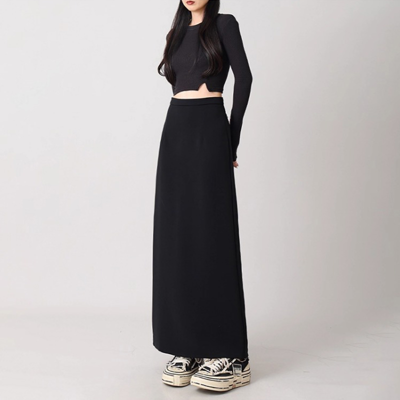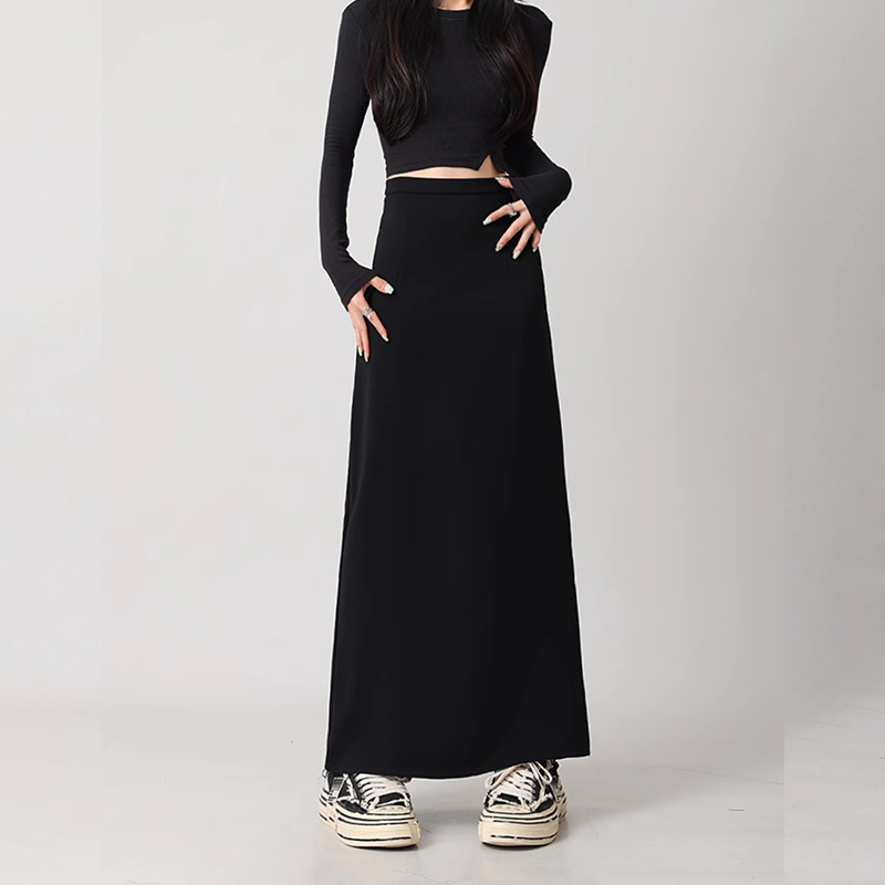 首降5折|歌莉娅黑色半身裙女2025新款夏季通勤穿搭好看高腰长裙