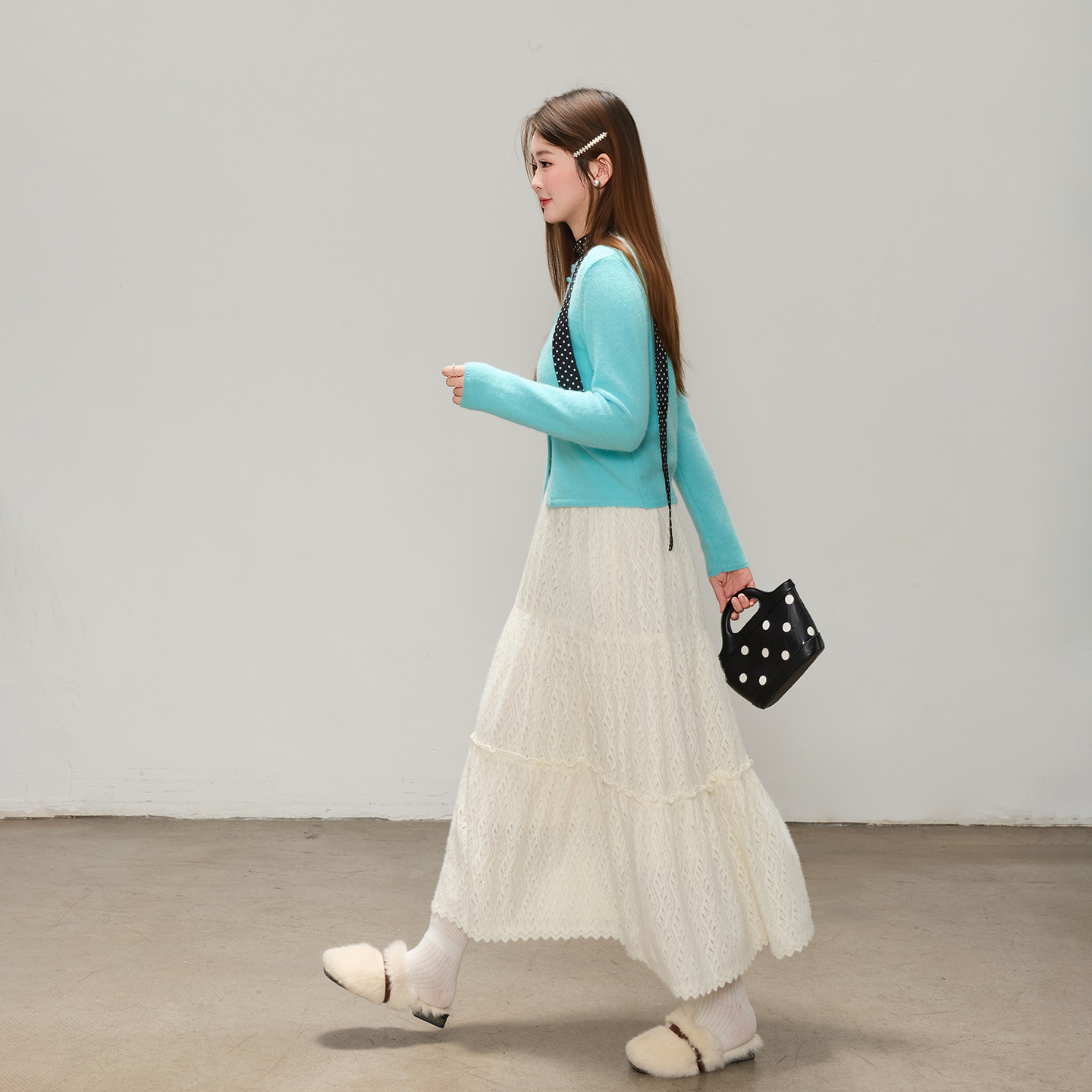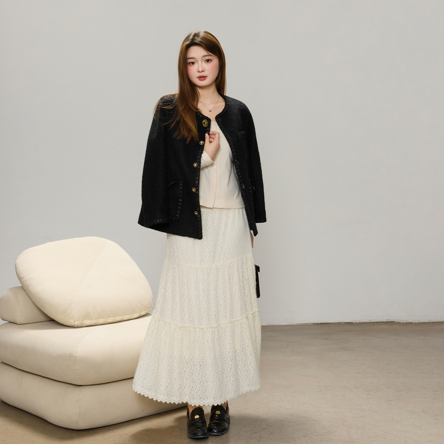 美丽客栈蕾丝提花半身裙子优雅设计感胖mm2025秋季新款大码女装