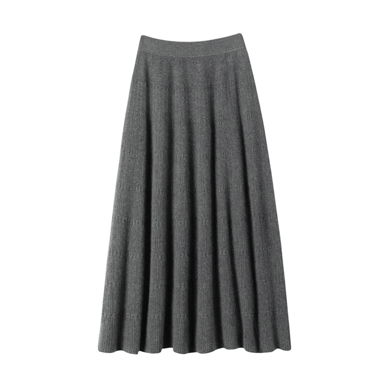 DM100大码百分百女装微胖mm冬季纯色百搭肌理针织伞摆长款半身裙