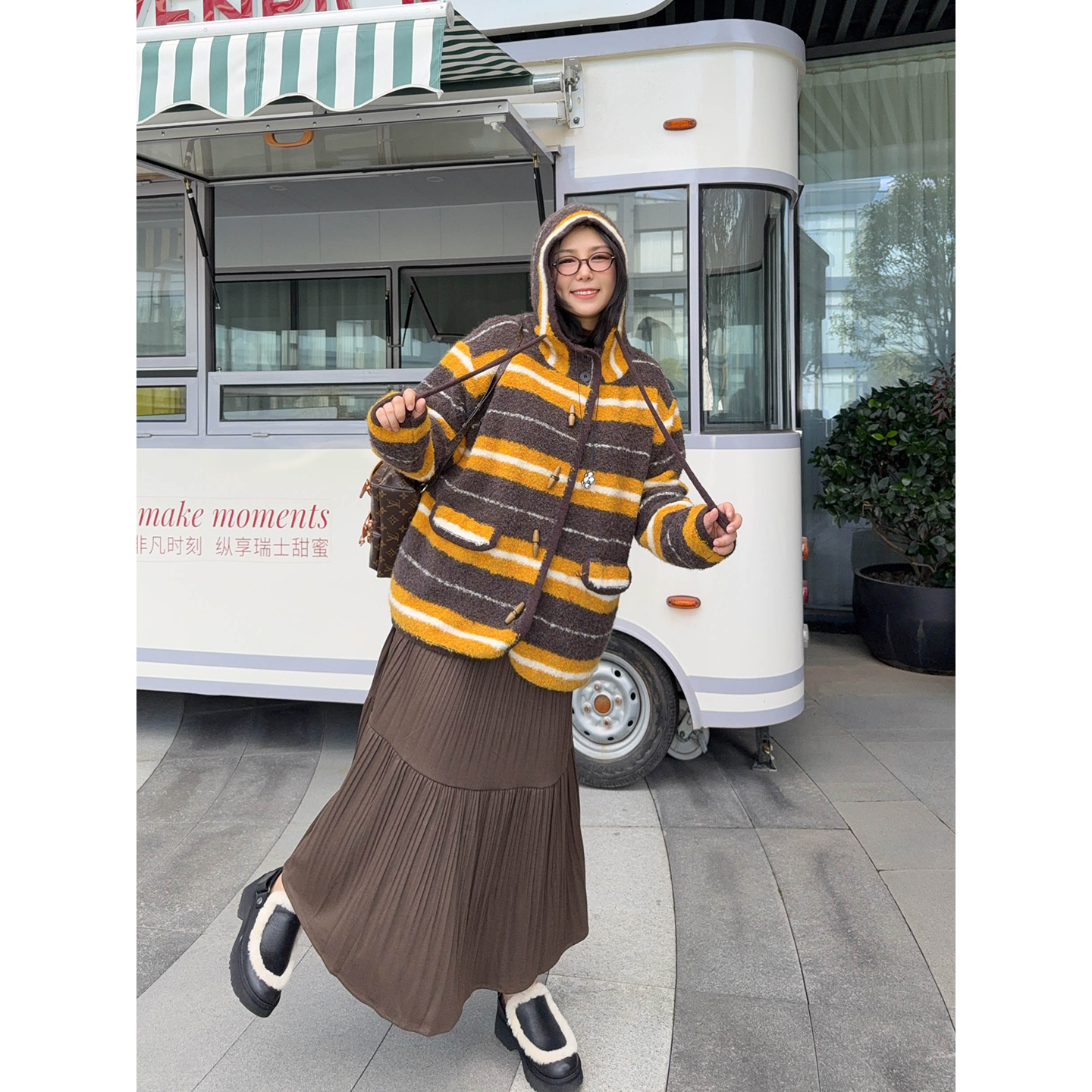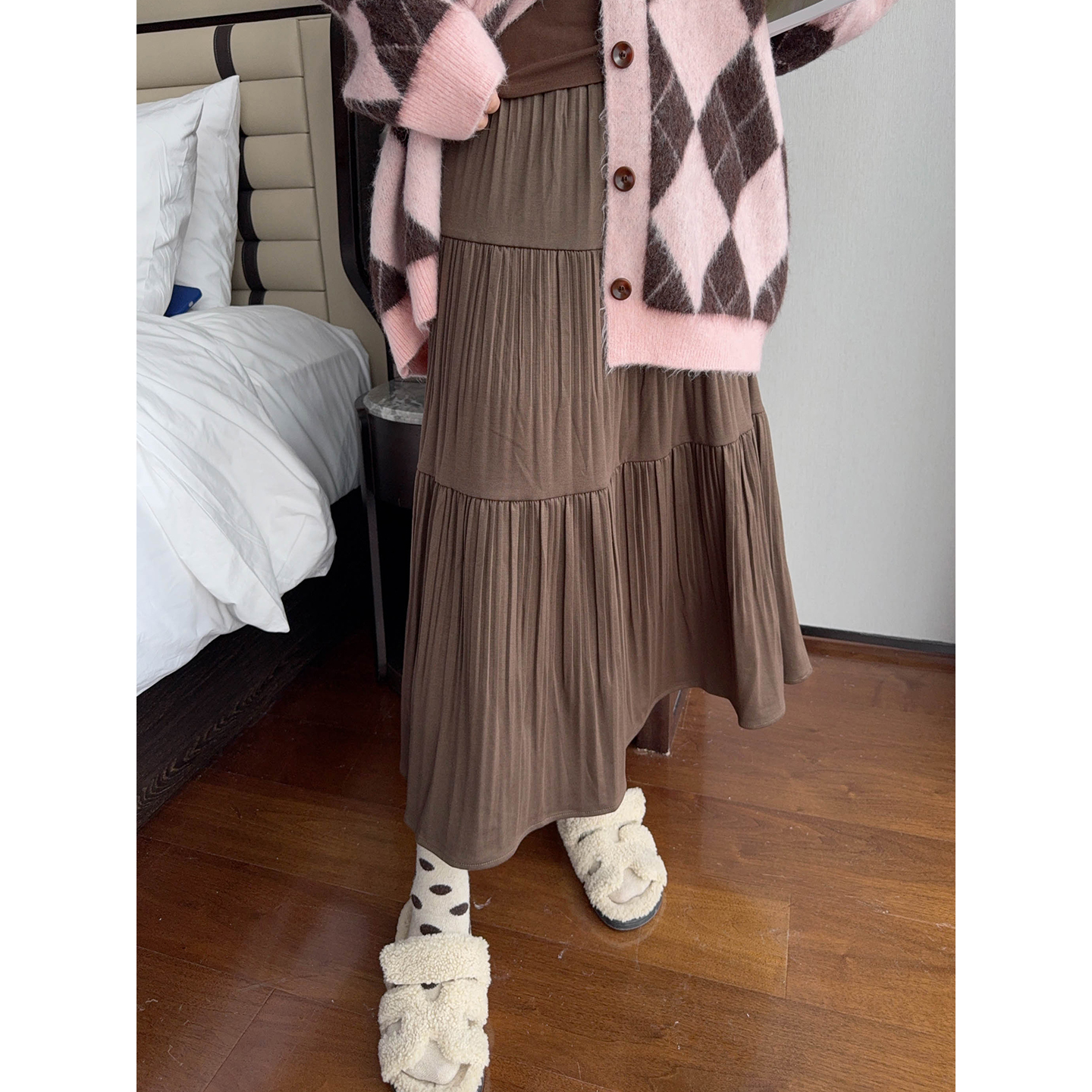 艺术高级感咖色伯克利百搭伞裙大码胖mm遮肚显瘦加长高个子半身裙