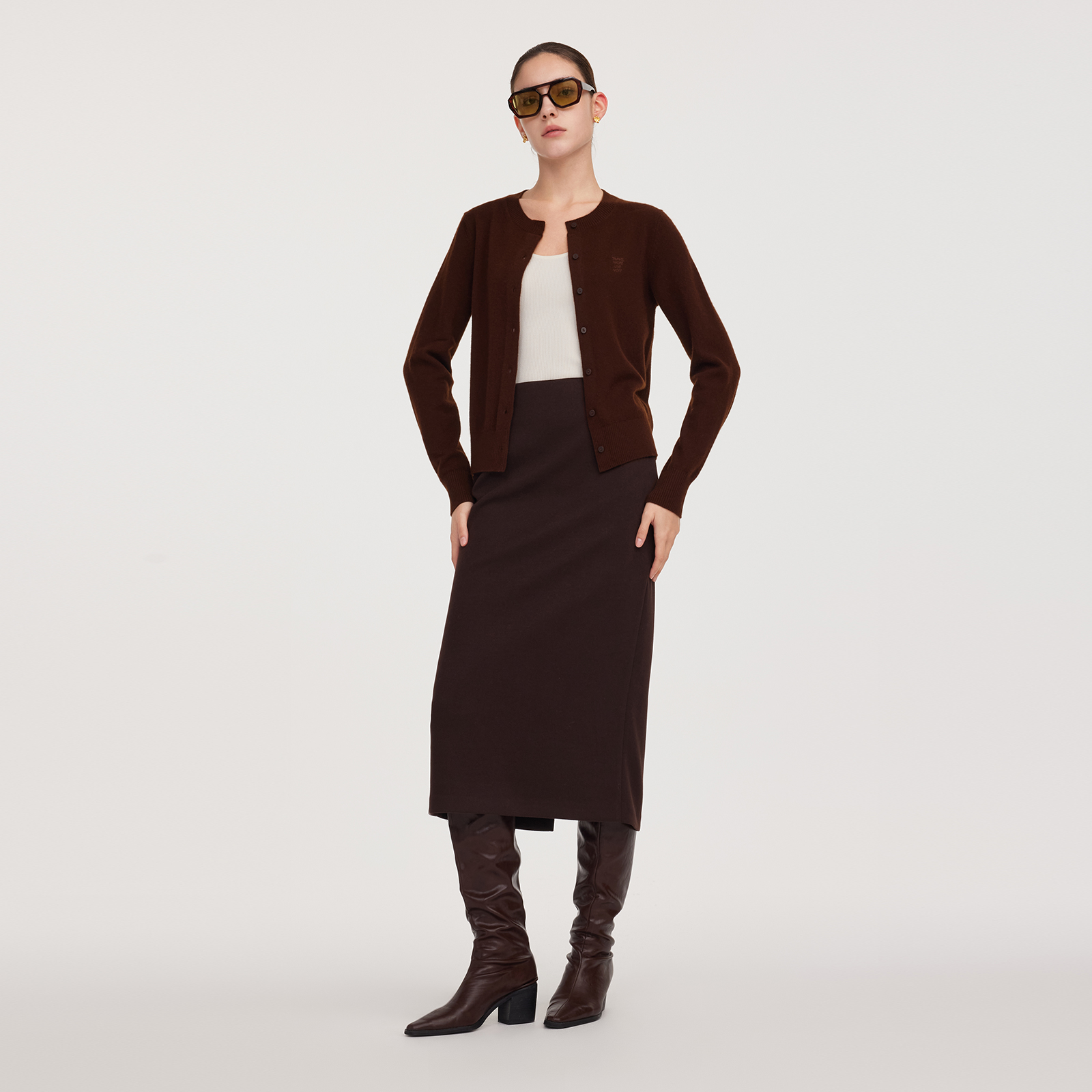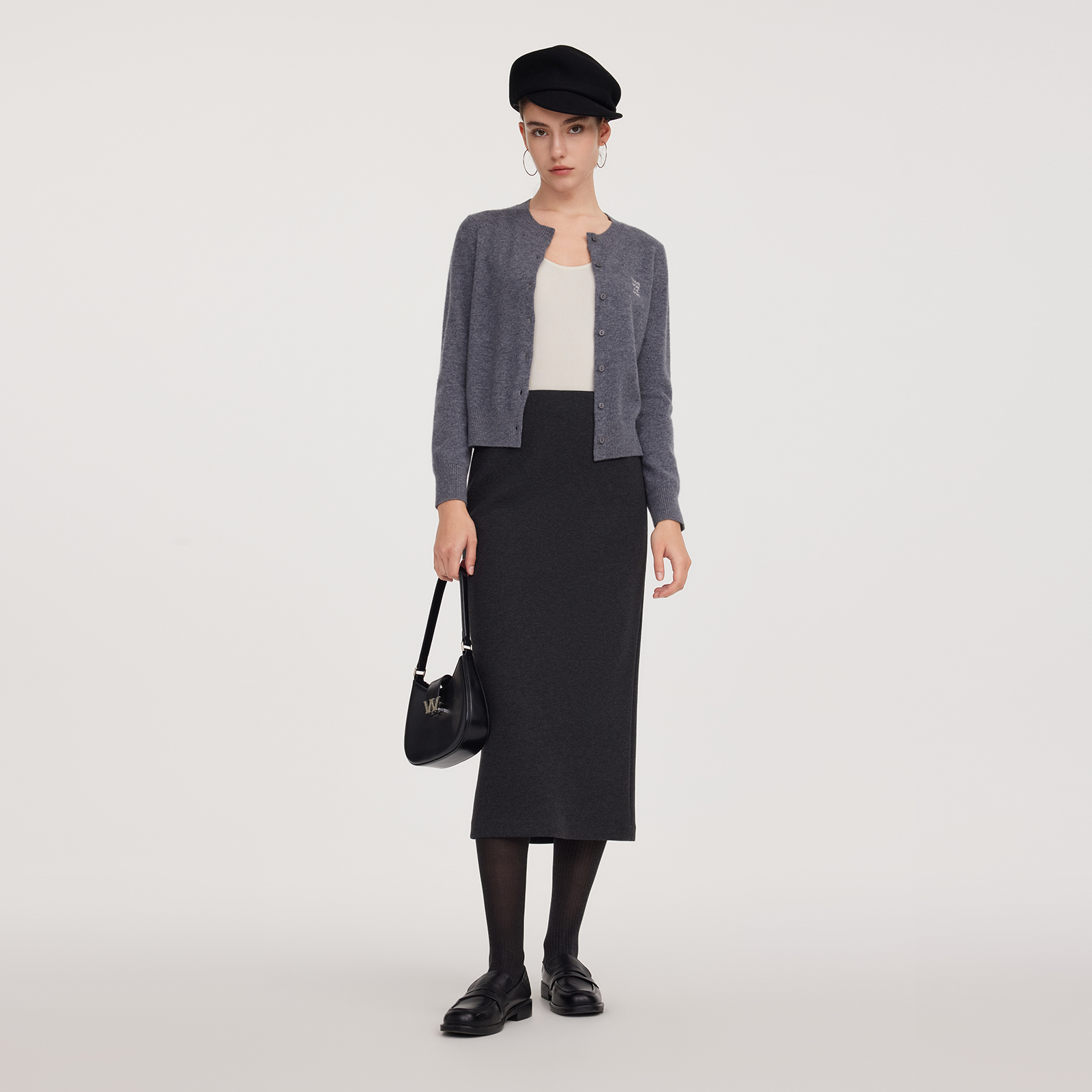 天【云舒织影】CHICJOJO灰色直筒半身裙女25冬新款松紧开叉针织半裙