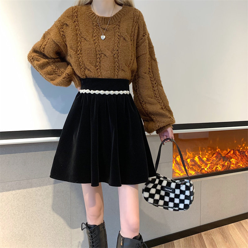 芬展半身裙秋冬新品高腰显瘦包臀麂皮绒伞裙大码一步裙A字裙短裙