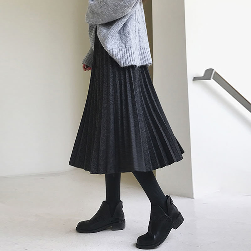 淘糯米半身裙女秋冬新款高腰显瘦大摆中长裙纯色A字大码松紧腰 裙子