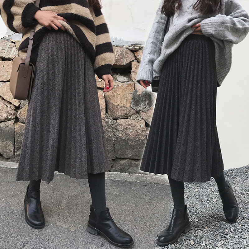 淘灰色毛呢波点半身裙女秋冬款胖妹妹mm梨型身材高腰遮胯显瘦a字裙