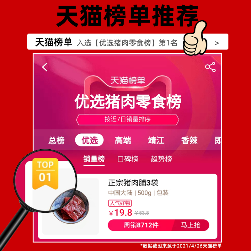 天猫满铺靖江鸡猪肉脯晚上解饿零食小吃散装肉铺猪肉干边角料休闲食品