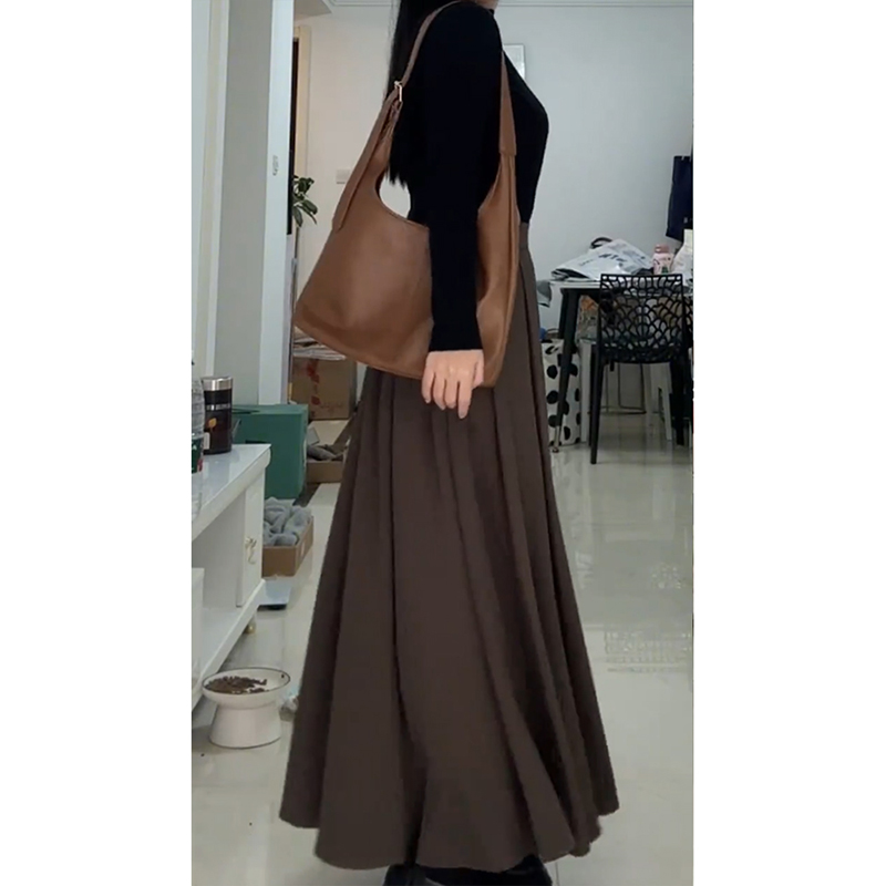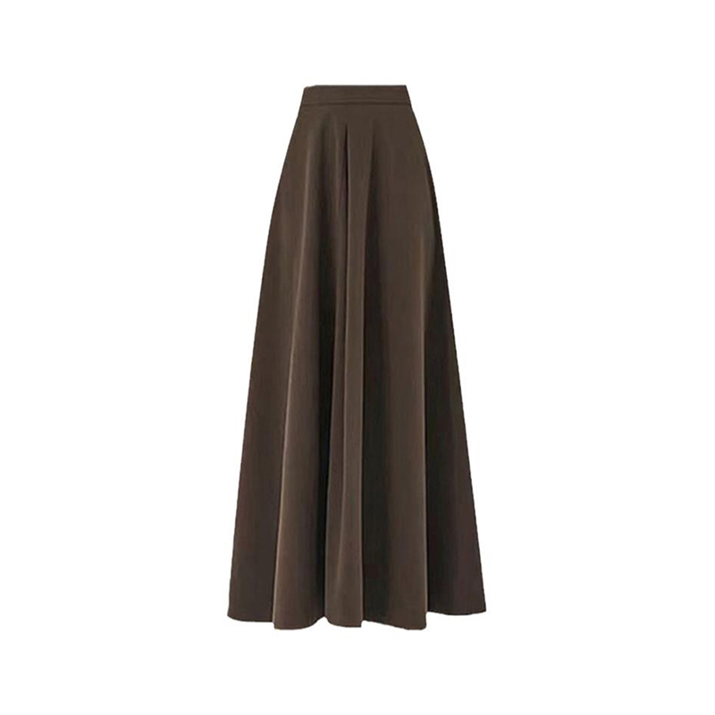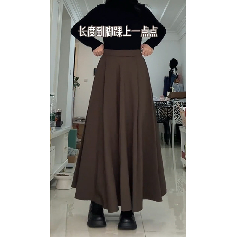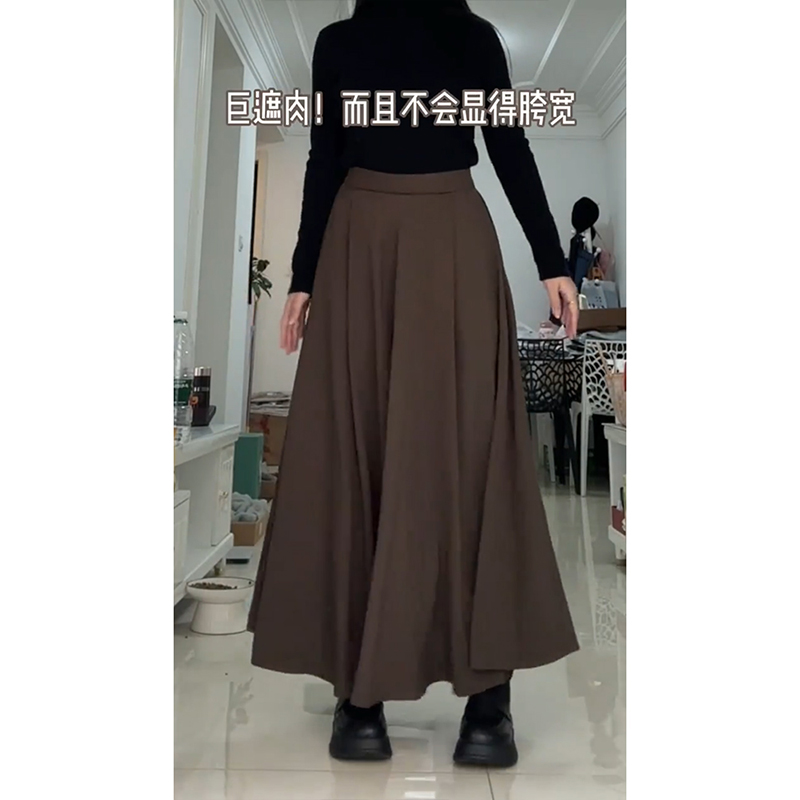 淘宝美拉德棕色半身裙女高级感气质百褶长裙a字大码胖mm显瘦大摆裙子