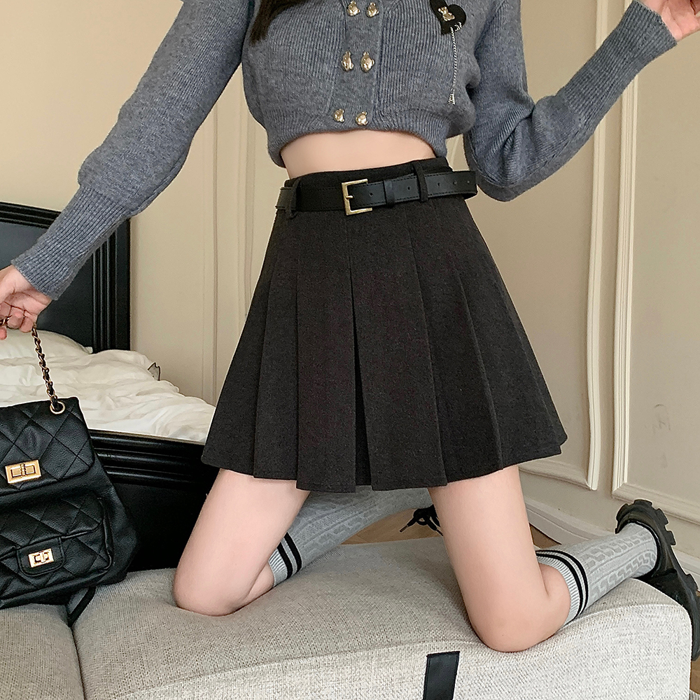 淘宝小吉家大码女装韩版毛呢百褶裙防走光短裙秋冬新款高腰a字半身裙