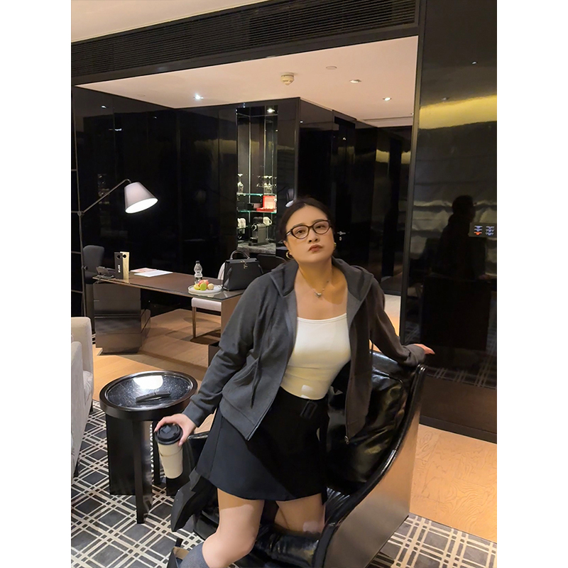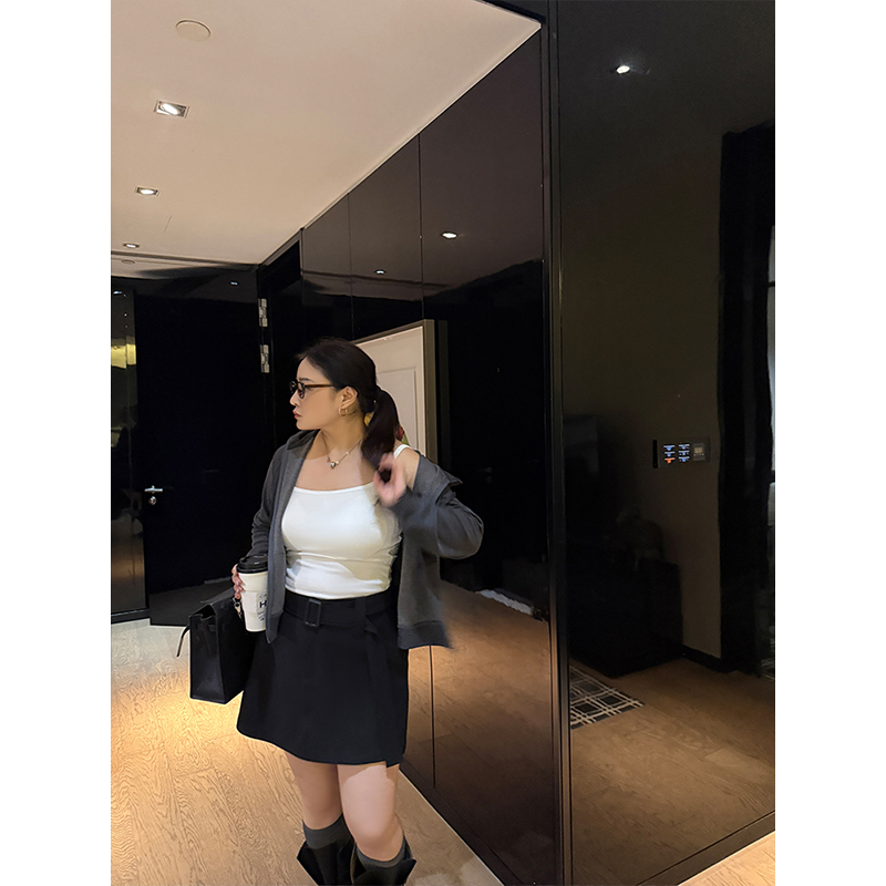 天【章若楠同款】Fabrique烟灰色褶裥短款直身西装灰色半身裙女秋