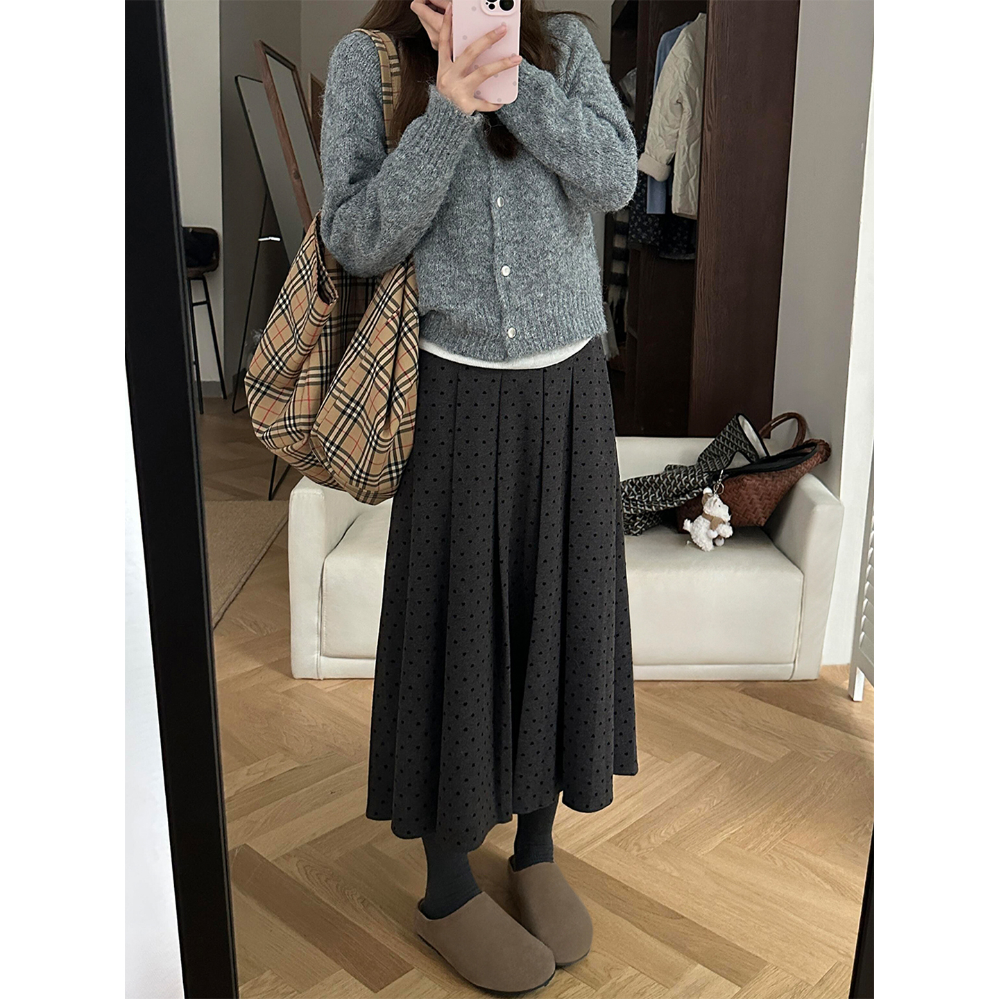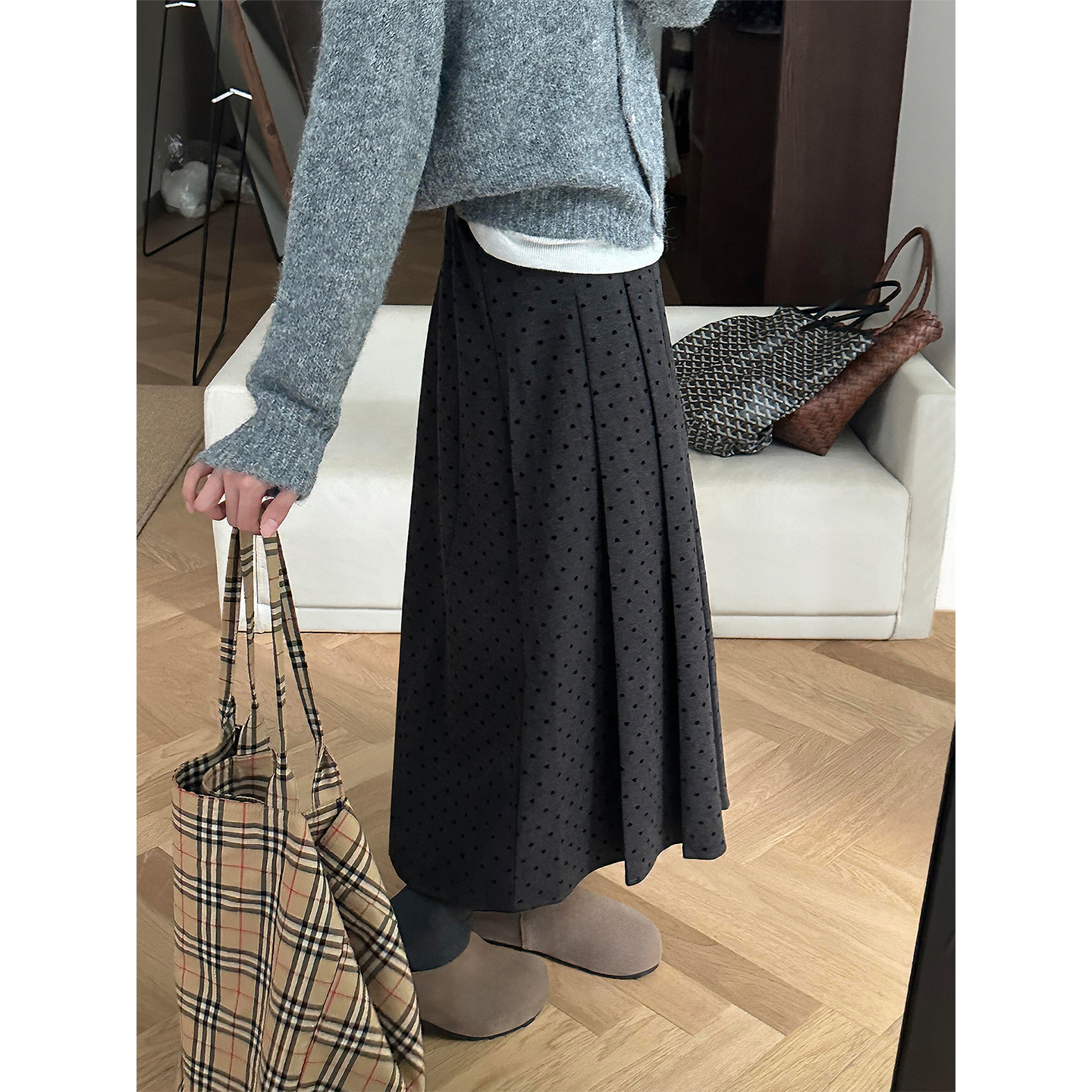 淘宝灰色毛呢波点半身裙女秋冬款胖妹妹mm梨型身材高腰遮胯显瘦a字裙