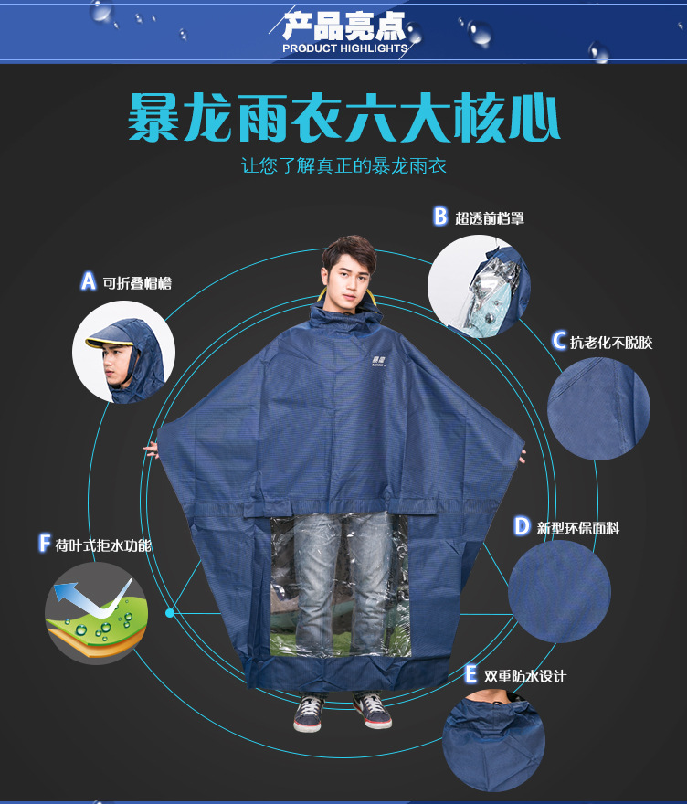 淘宝暴龙雨衣电动车雨披电瓶车摩托车成人单人男女加大加厚大帽檐包邮