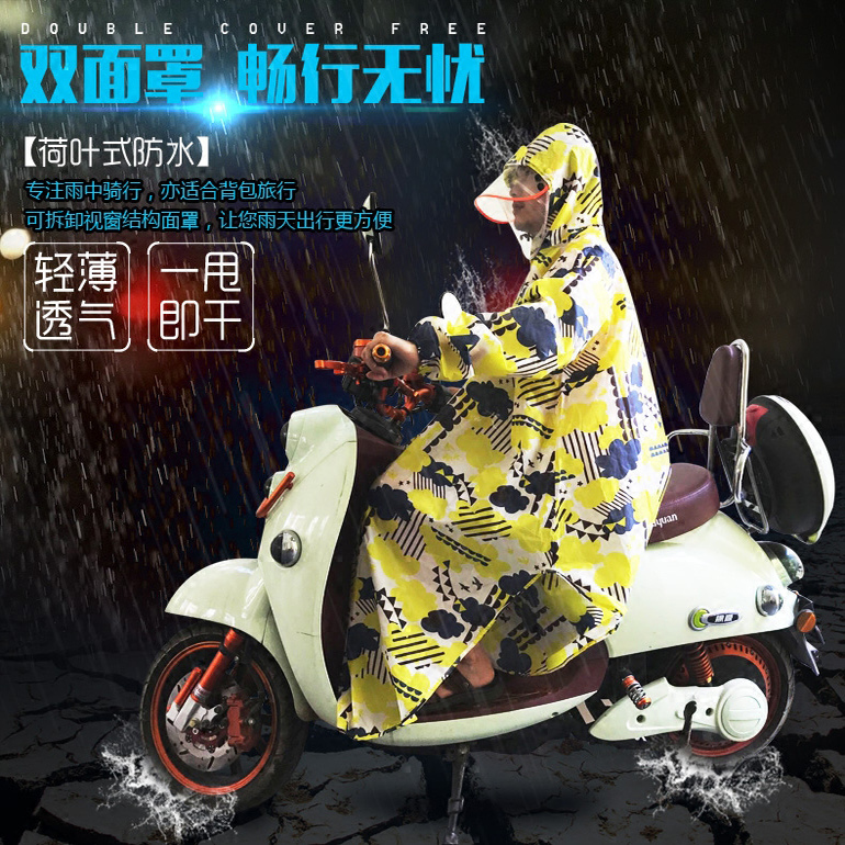 淘游点新款电瓶车电动车摩托时尚雨衣单人大码轻薄骑行防暴雨雨披