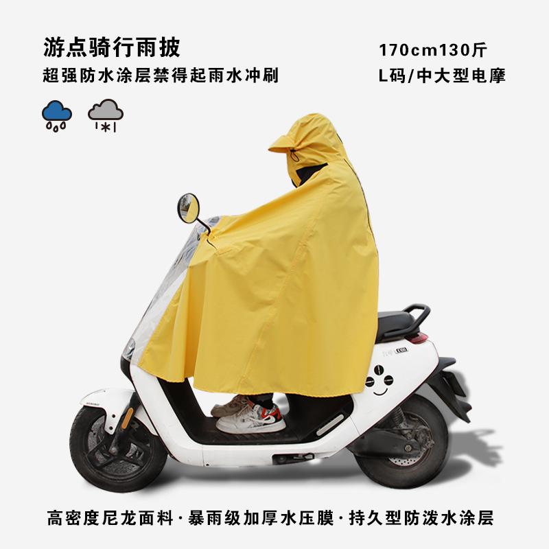 淘宝游点新款电瓶车电动车摩托时尚雨衣单人大码轻薄骑行防暴雨雨披