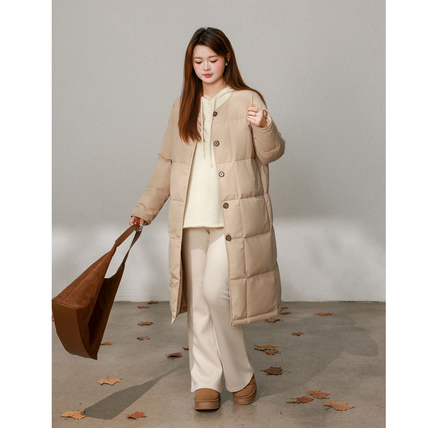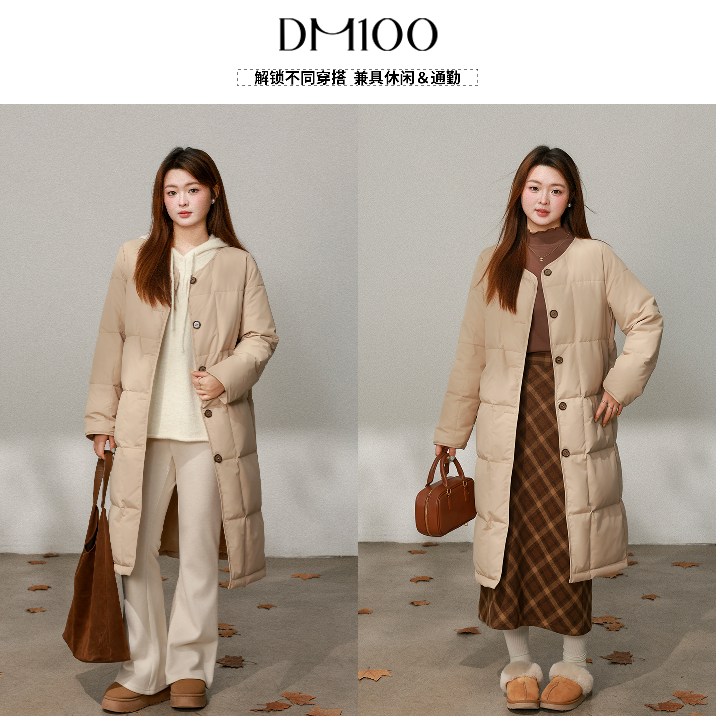 淘宝DM100大码百分百女装微胖mm冬季宽松直筒办公室简约羽绒服外套